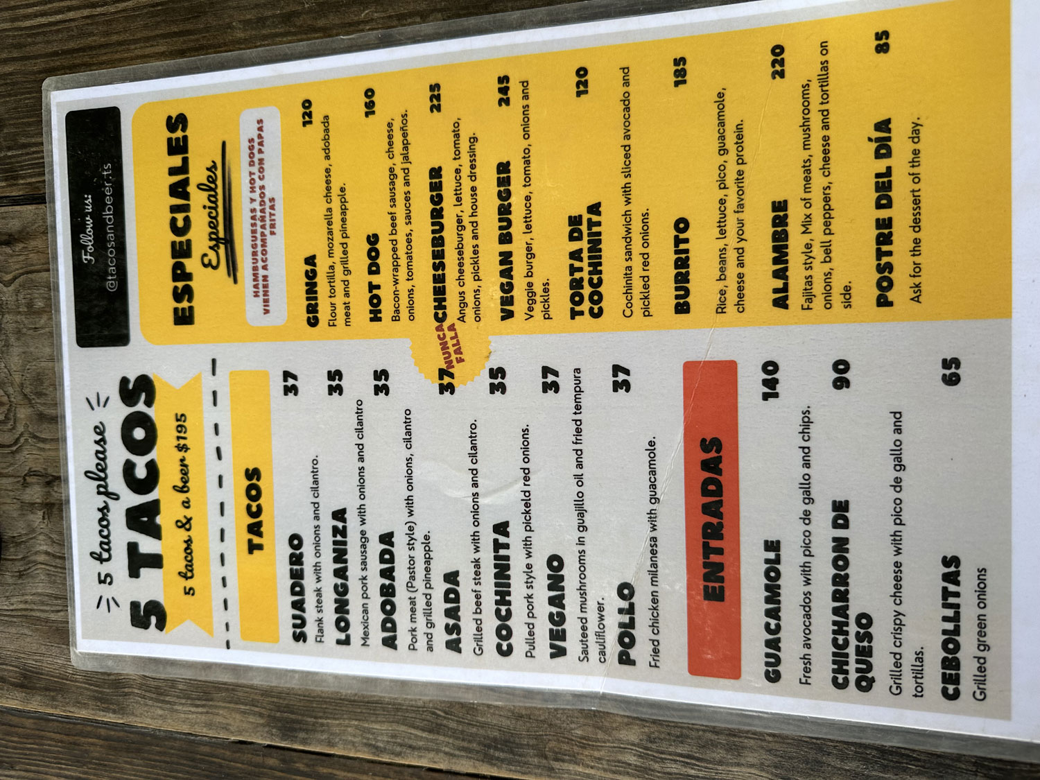 This local taco restaurant offers very good tacos, friendly service at a very reasonable price. Where else are you going to get 5 tacos & a beer for $195 pesos. I will be back to try out Taco Tuesday and its specials in the near future.