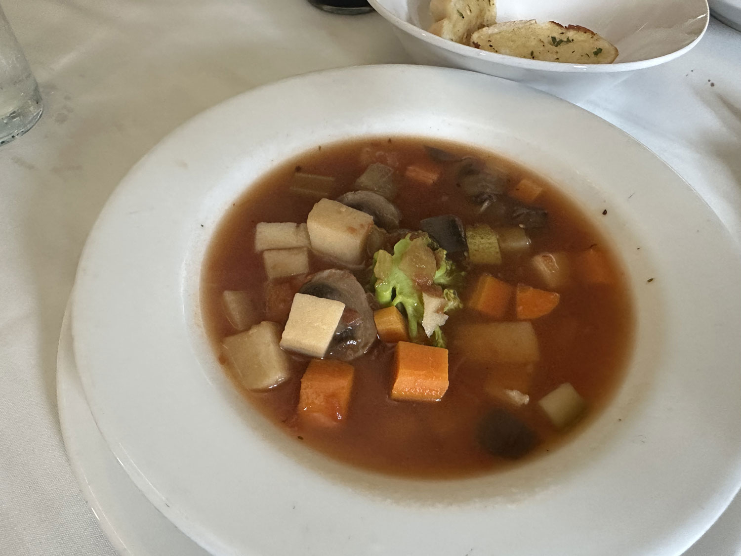 The service was impeccable with each course being served to us both at the same time. The portions were large, the flavors amazing with good presentation. During our meal, music by Andrea Bocelli was playing through the speakers setting the atmosphere. It was a great lunch experience for only $360 pesos (compare that with Limonetto in San Jose del Cabo for $680 pesos with less choice – pizza or pasta).