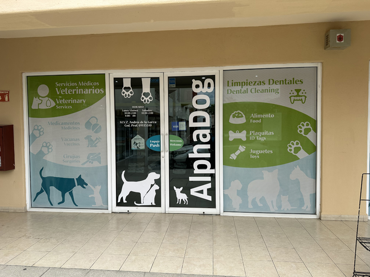 Located in Plaza del Cabo on the frontage road between Vidanta Golf Course and Walmart, Alpha Dog combines veterinary services, grooming and supplies in one location. Originally, Beth only visited Alpha Dog because it was one of the few places that she could find Bully sticks for Charlie. Then she tried their grooming service and was very happy. Andres de la Garza is the owner and veterinarian.