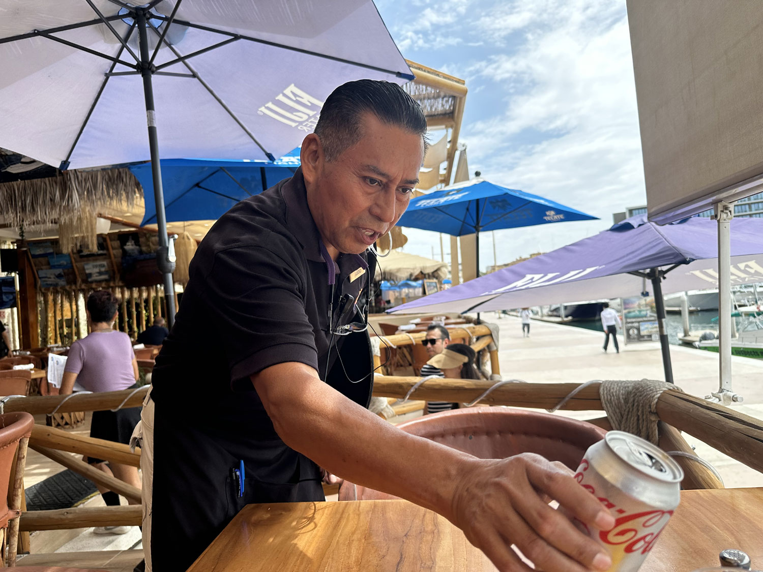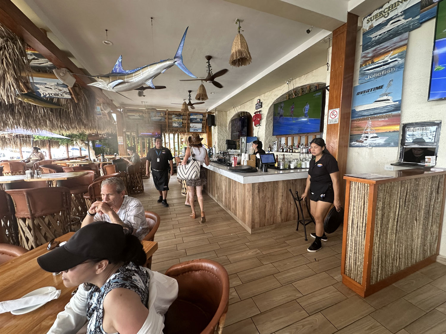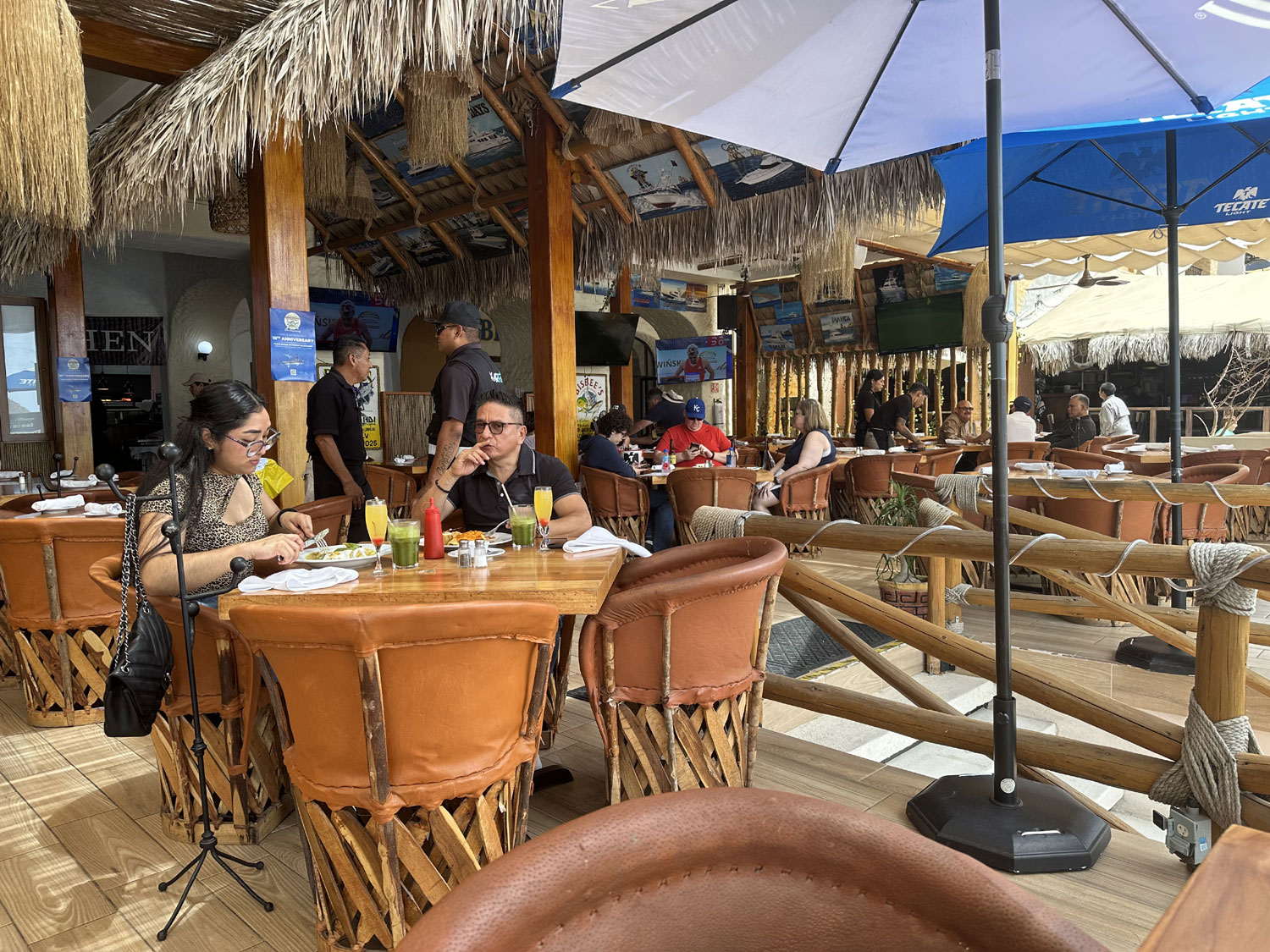 If you have walked around the marina in Cabo San Lucas, you have seen. all of the restaurants around it. One of the most popular is Baja Cantina, located across from the entrance to docks L,M, and N since 1991. This palapa-covered outdoor restaurant with a great view offers breakfast, lunch, and dinner, with extensive menus.