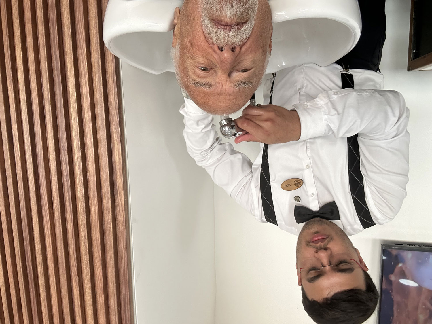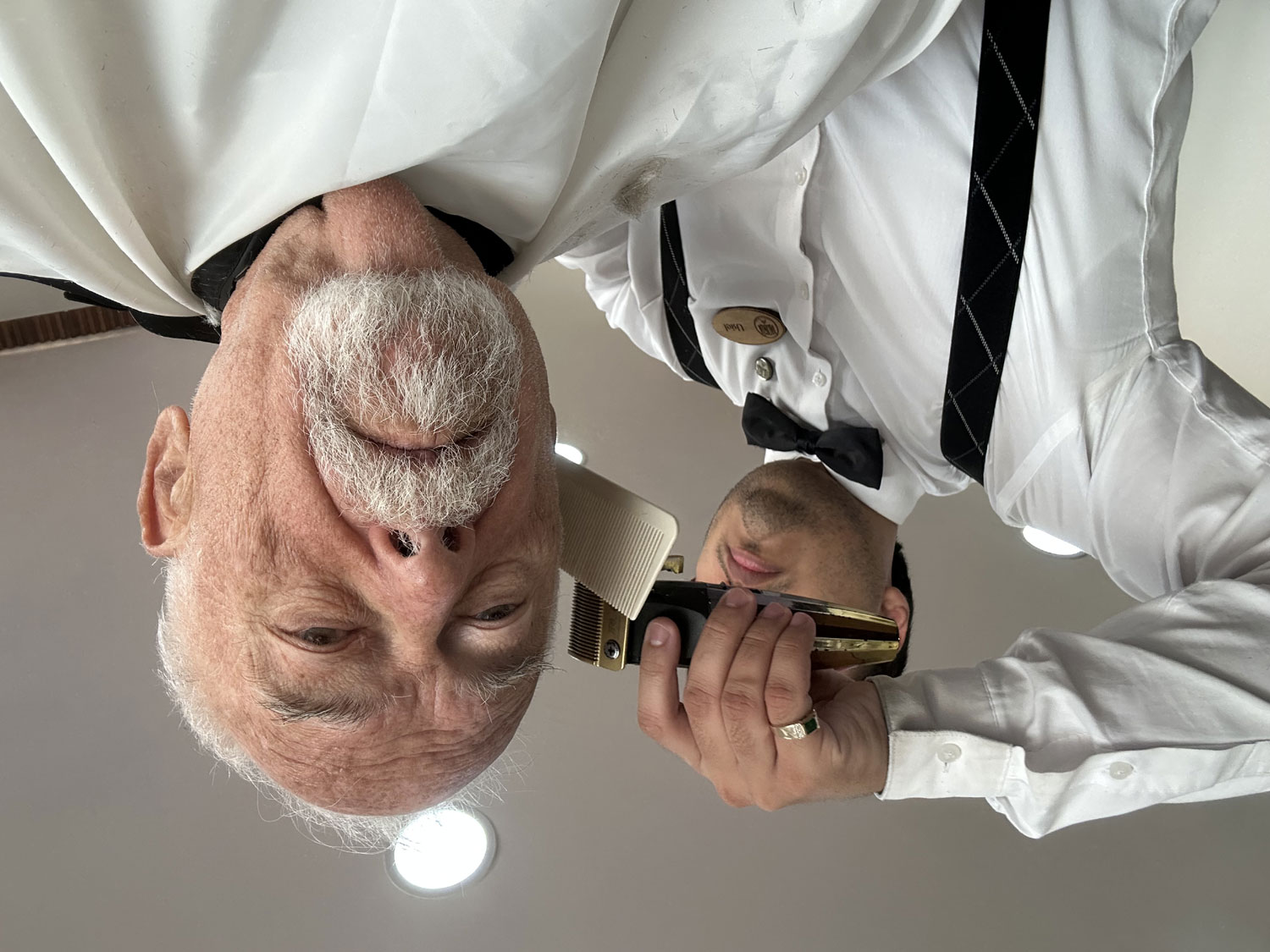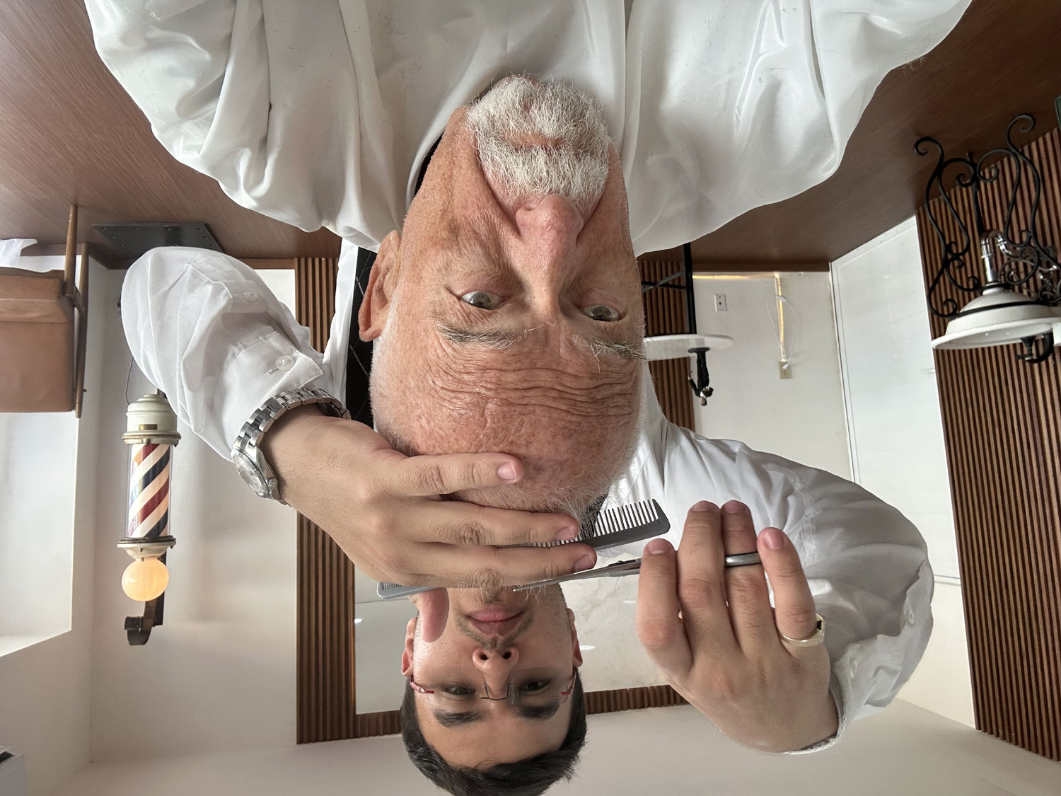 My first visit to Barberia Alpha was the result of a gift from my wife Beth, and I have been returning regularly ever since. It is not just a haircut but a full treatment that includes washing my hair, cutting my hair, trimming my beard, eye brows, and those nasty hairs in your ears and nose as well as a full shave. The shaving process is very special because in includes shaving cream, a hot towel treatment, the shave, a second hot towel and facial massage with an electric hand massager. The overall experience is finished off with a little after shave lotion. I feel great during the process and when I leave. It is impossible for me to get as close a shave as with the straight razors used at Barberia Alpha.