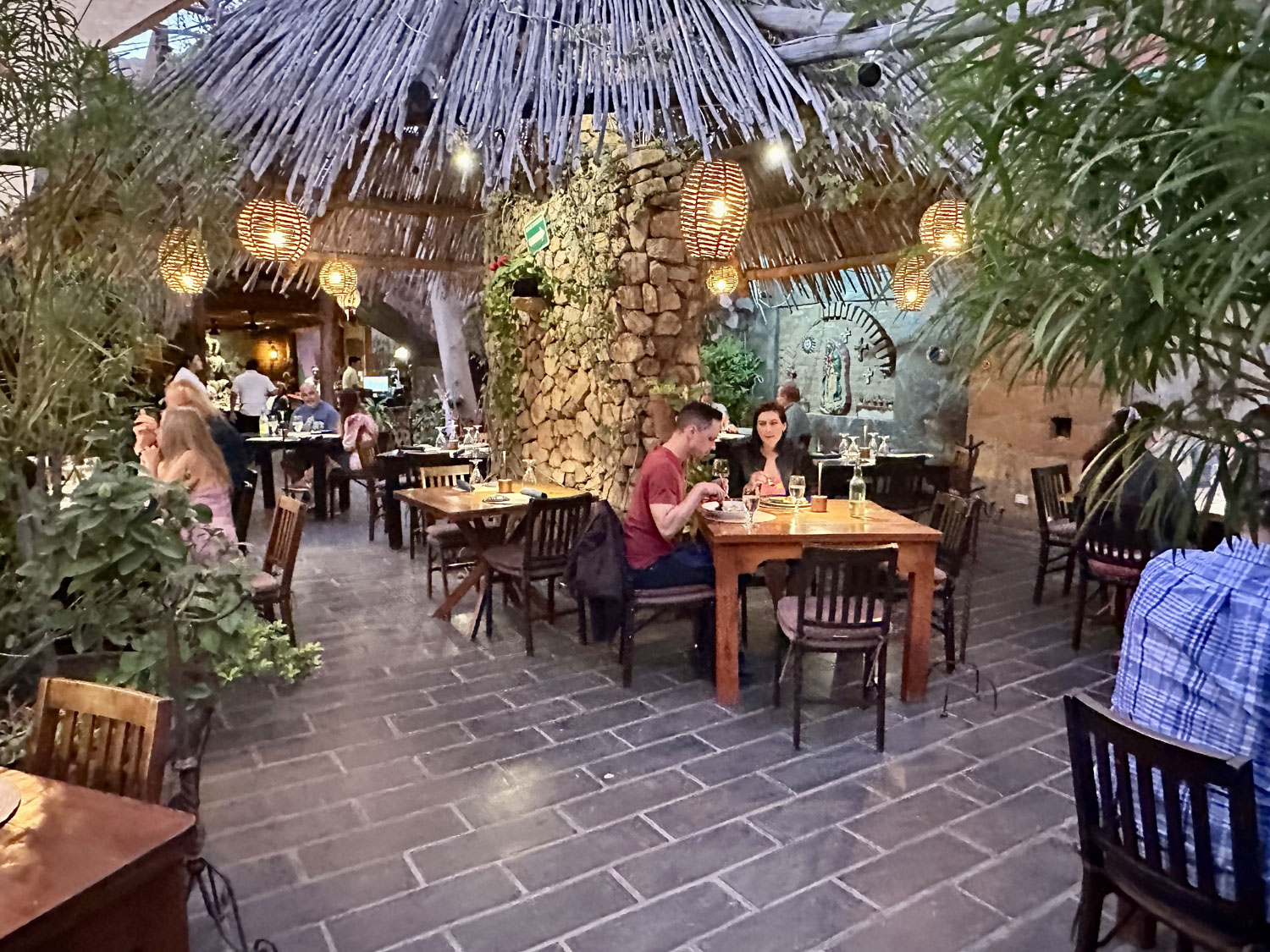 I wanted to arrange a surprise birthday dinner for my wife Beth. As our daughter would be coming from Todos Santos, I needed to selected someplace in Cabo San Lucas. Casa Martin is one our favorite places in Cabo San Lucas, not only because of great food and service, but because of the very special atmosphere. Guests enter through a door cut in the middle of a large gate. The main dining is the courtyard of an old house with three special spaces as well as the open area patio. I arranged for everyone to arrive at 6:00 pm and told Beth that are reservation was at 6:15. We were joined by our daughter Chava, Bill and Tanya, friends who live in El Tule, and Tracy and Leann, two neighbors from Campestre.