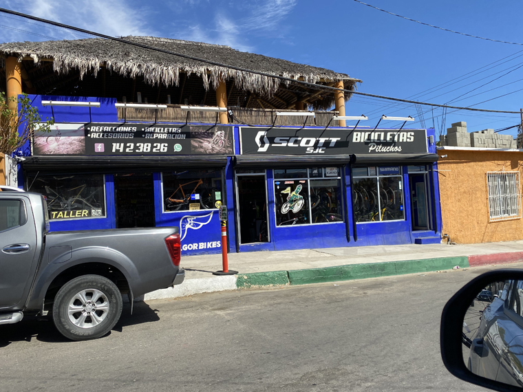 I stopped at another bike store – Bicicletas Piluchos – to get a cable lock for the bikes.  This store has a full range of new bikes, accessories, and services bikes as well.  They are located on the corner at the light one block north of Valerio Gonzales (Walmart street).  The Fresko shopping center includes a bike store combined with ATVs – Baja Bikes.  Above the small shopping center across from the Barcelo and above JJ Burgers and Salads is another bike shop – Thunders Bikes.  Finally, you can buy or rent bikes in the small strip mall beside Fonatur on Blvd Mijares and across from the entrance to the Estuary in San Jose del Cabo – Sanjo BIKES.