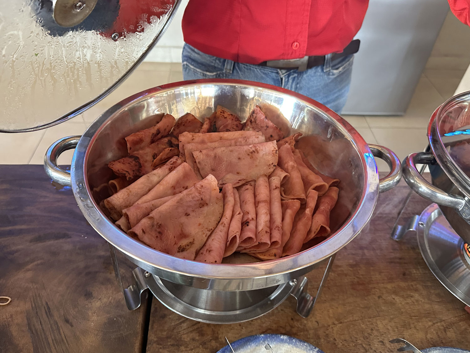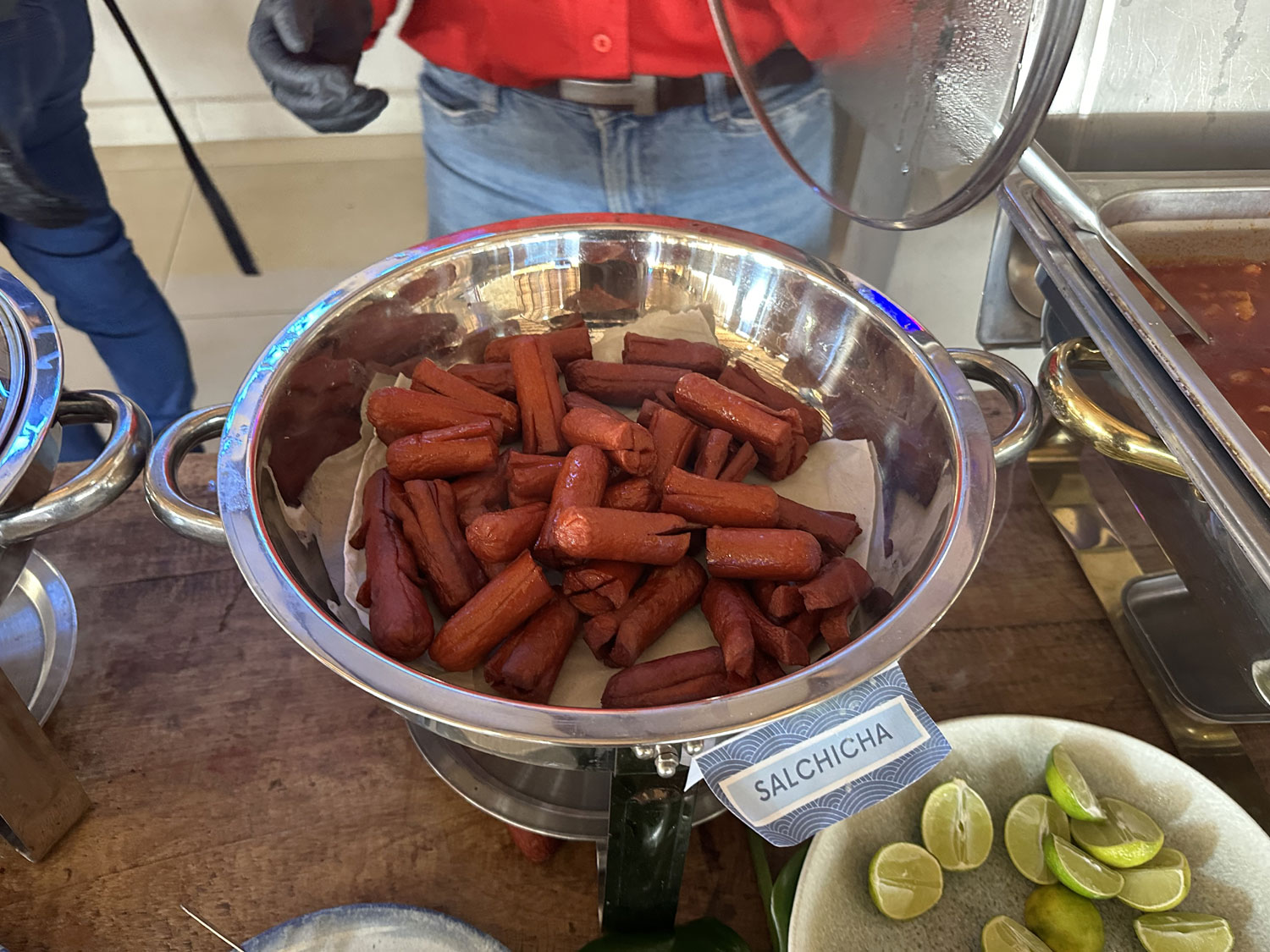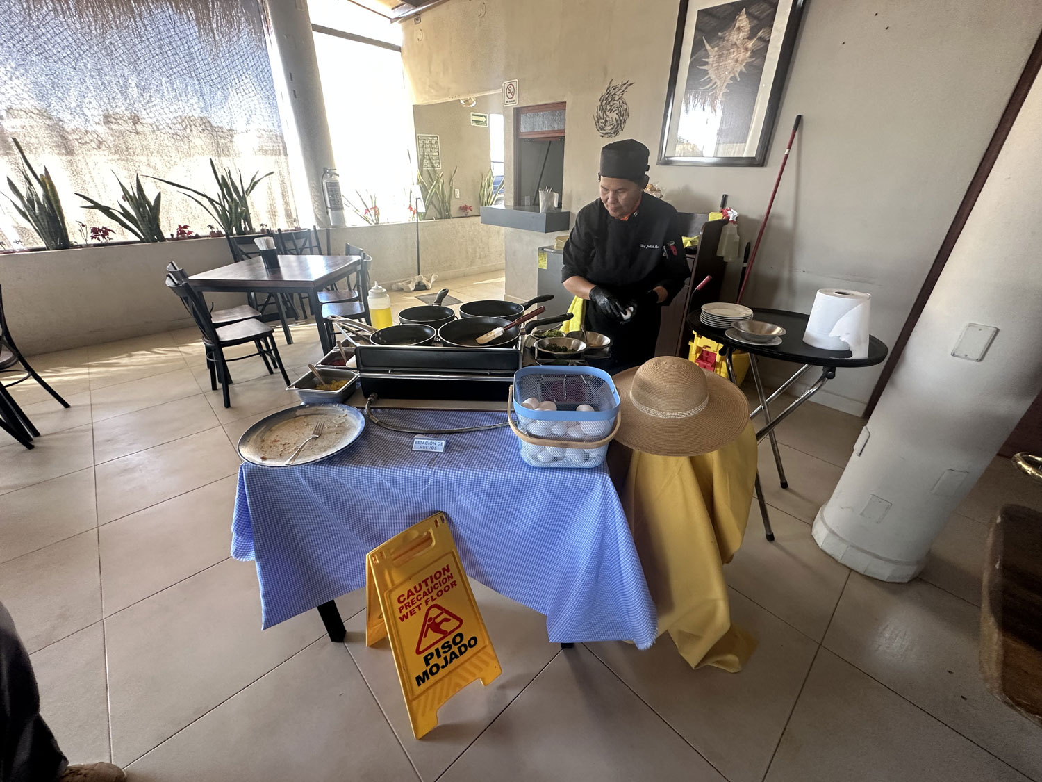 Last Sunday La Tuna Restaurant and Bar was packed for its first day of a Breakfast Buffet. A feast was laid out along the back of the restaurant starting with an omelet and egg stations overseen by Chef Judith Paz. Two long tables offer the diners choices of chilaquiles, bisteck ranchero, refried beans, waffles, breakfast meats, sausages, and more. The last table offers fruits, breads, pastries. Your breakfast buffet also includes coffee or tea and juice.