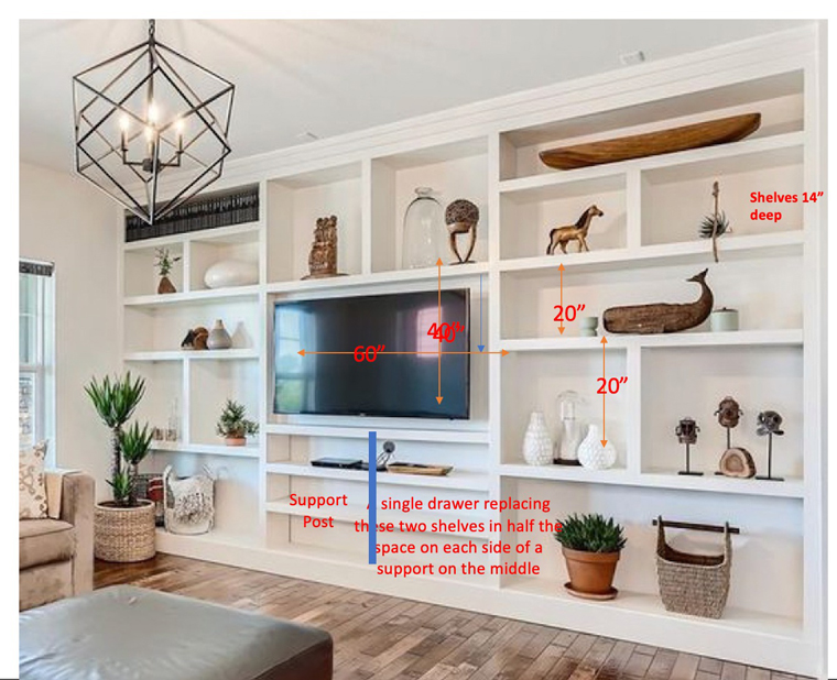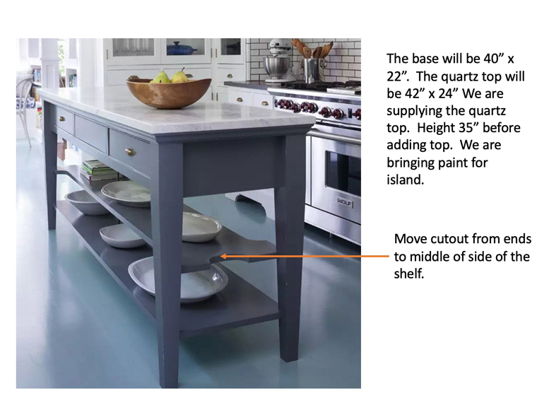 When the time came for delivery and installation, Carlos loaded up a trailer and brought a team down. We had him build a wall unit for the whole back wall of our living room, a kitchen island painted to match the lower cabinets in the kitchen and with the quartzite top we had from our counter supplier, a round outdoor table, a bench for our courtyard with a lifting seat for storage, a desk for my office, some barstools and a side table for the upstairs bedroom. Carlos even bilt shelves to fit in our master bedroom closet, matching exactly the style of the closet itself. The workmanship is amazing and the installation was flawless. Carlos even came back to touch up the wall unit and to repaint the island when we found that the builder had not used the exact paint that we asked for in painting our kitchen cabinets.