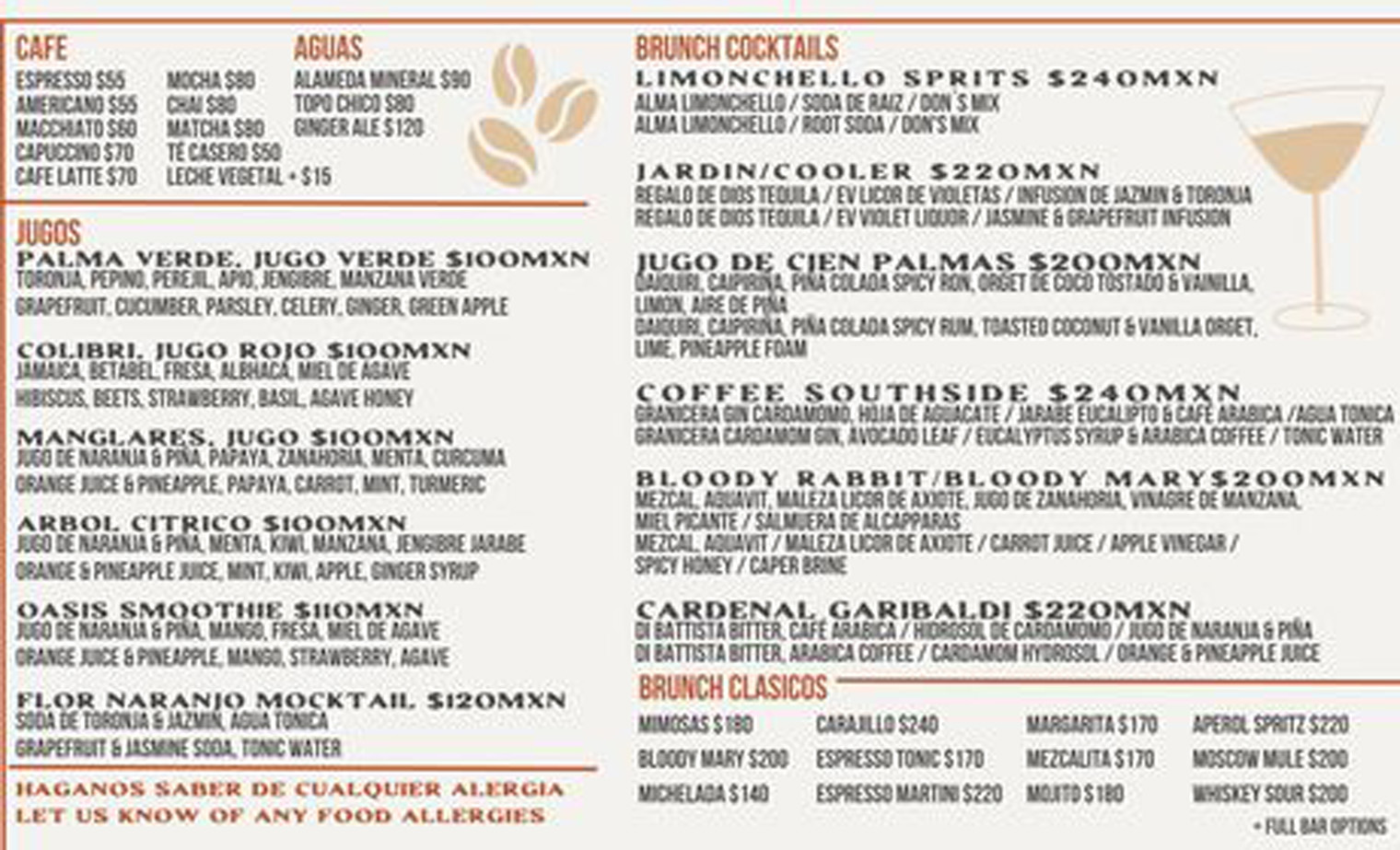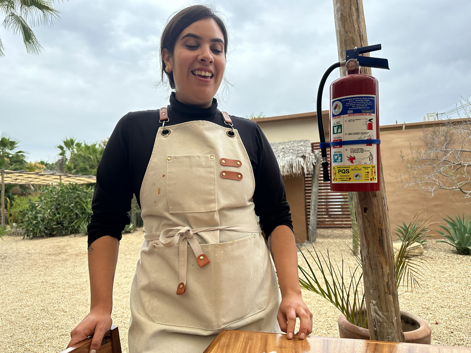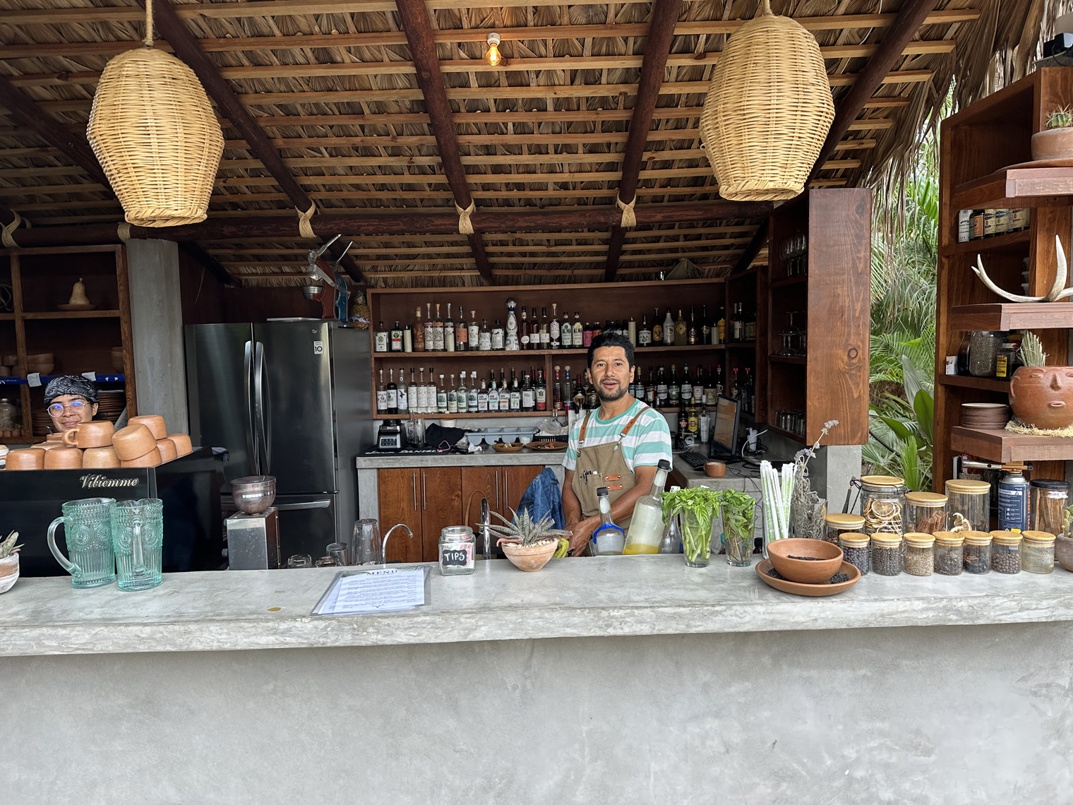 An important part of the development and opening of the cafe was having the right staff. The head mixologist from the Todos Santos Inn, Carlos Gonzalez approached them as he was looking for a place to have a bar. Carlos was joined by an assistant mixologist, Felipe Cruz. Their chef Malia Loaiza has spent time at Jazzmango. Chef Javier Plascencia, a family friend of Santi’s recommended her. The team was filled out with a passionate barista, Sarahi Gonzalez. This provided Cien Palmas with the ability to offer brunch and coffee in the morning (8:00 am to 1:00 pm) and then open as a bar and restaurant for dinner at 6:00 pm. The cafe and bar/restaurant are only open from Wednesday to Sunday.