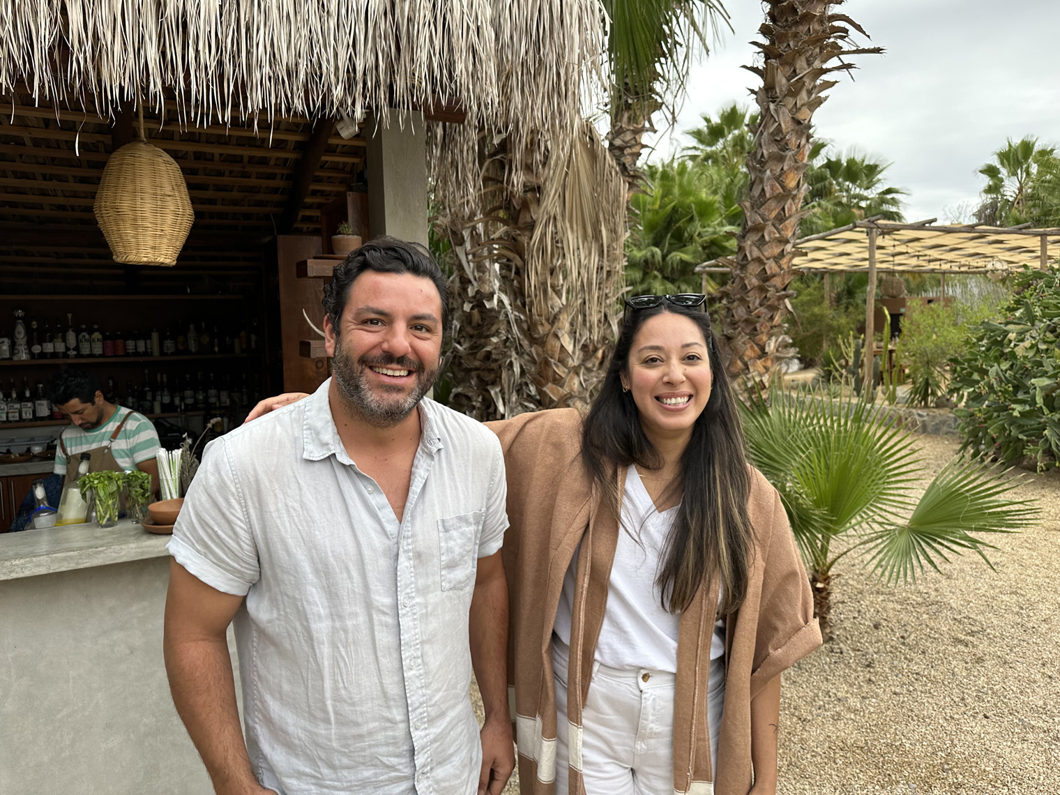 The creation of Santi Araujo and Mariela Torres, Cien Palmas is a combination of accommodations, a restaurant bar, and a store in the heart of Todos Santos. Several years ago, the couple went on a vacation to Spain and loved it and wondered why they were spending their time in Los Angeles. As a result, they sold everything, bought an RV, and started to travel the southwest looking for a place in the desert to settle. They decided to take a trip down the Baja and arrived in Todos Santos and fell in love with the place.
