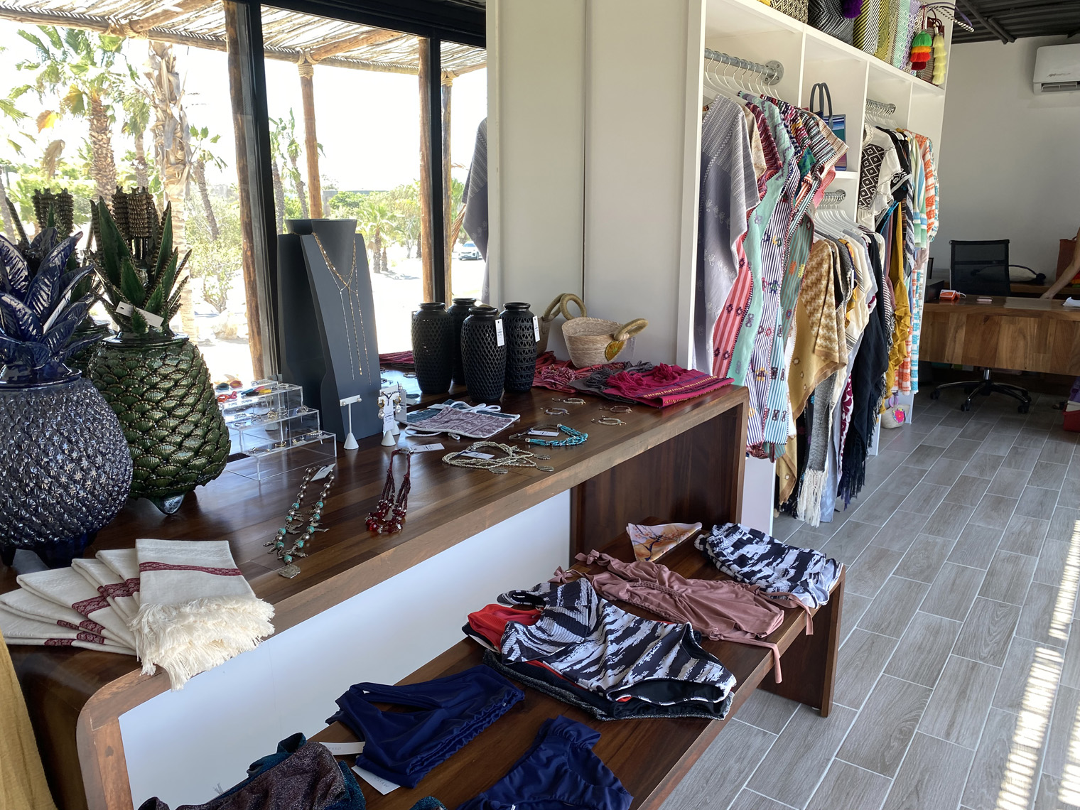 This bright yellow retail clothing and accessories store is located at the third round about as you drive to Puerto Los Cabos from San Jose del Cabo. This retail store has a nice selection of clothes for both women and men as well as accessories. The young woman who was managing the store was very helpful. There is parking outside and in the future, they will offer food from the food truck set up beside the trailers.