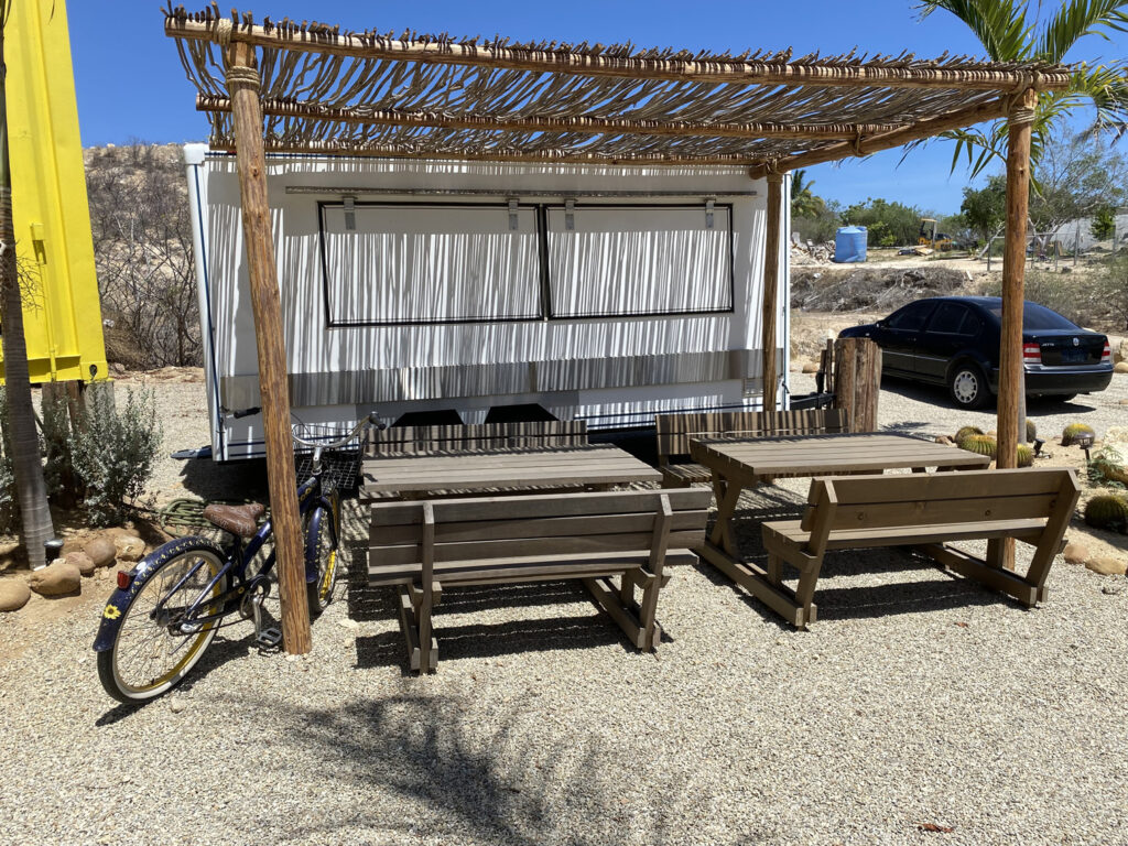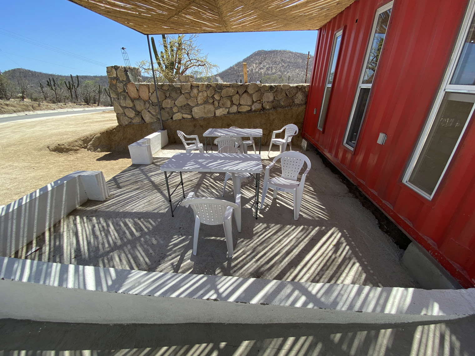 Traveling down the East Cape Road for another mile or so, you will encounter a small container based convenience store, La Casa de Los Abuelos. We had watched this place being built on our trips back and forth from San Jose del Cabo to Zacatitos. It is called the “House of the Grandparents” because behind the store is a house that is owned by the Grandfather and was built with his son, a local contractor, who also builds with containers. The store offers lots of the products needed for your home as well as drinks, snacks and more. In the future, they will be offering food from their small kitchen, which you can enjoy in the covered patio in front of the store.