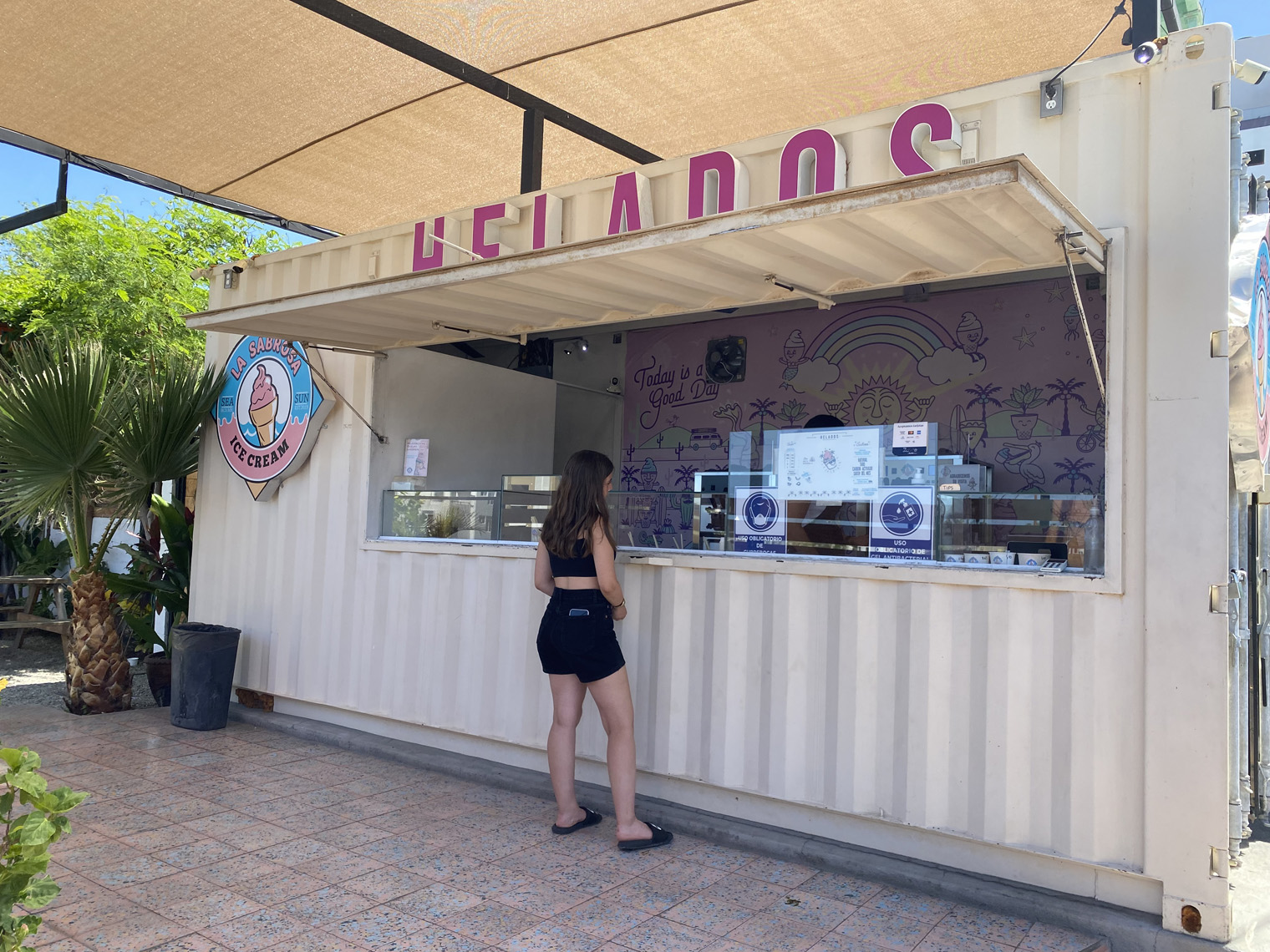 Located at the start of Calle Centenario just past the Pemex station at the top of the hill in San Jose del Cabo is La Sabrosa, an ice cream parlor in a pink container. La Sabrosa also has an outdoor patio with picnic tables where you can enjoy your ice cream selection. Focused on Greek yogurt ice cream of the highest quality, promoting a fun, healthy and sustainable experience, adding in each spoonful the perfect touch of colors, flavors and freshness in a natural way. La Sabrosa is part of a lifestyle where you can take care of the environment, eat healthy and at the same time with the best possible vibe! Their motto is TASTE LIFE. You can choose the ice cream like and then add from trays of a whole series of toppings.