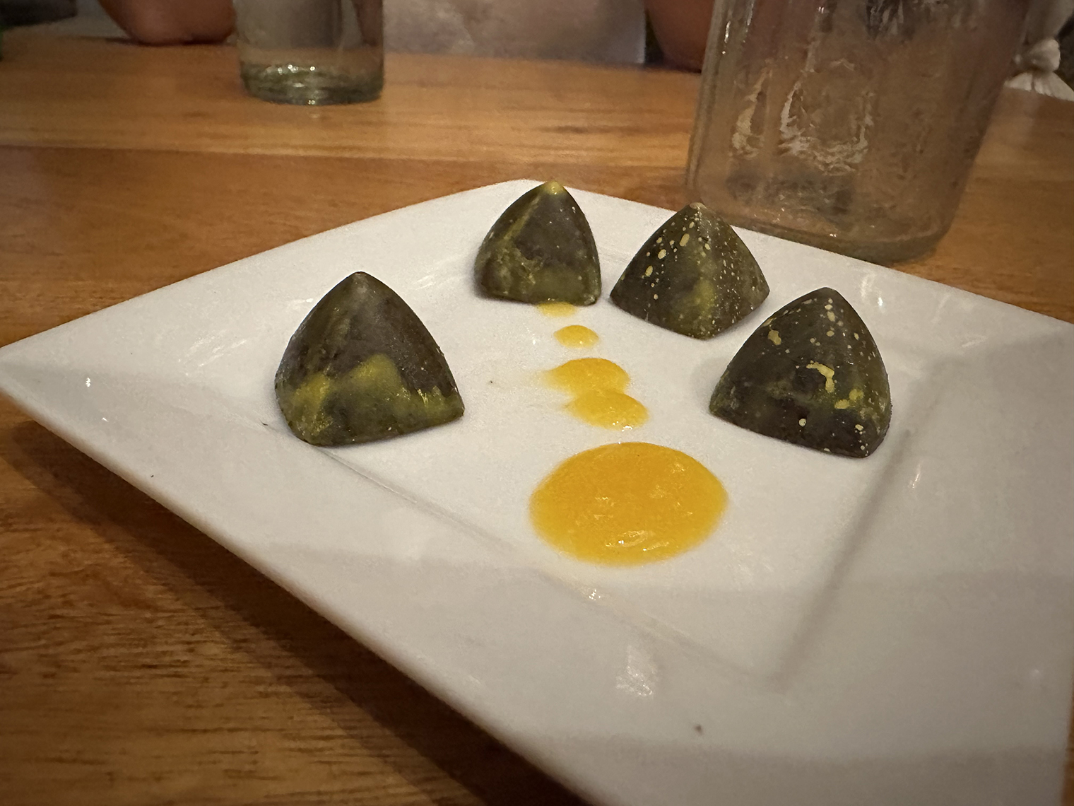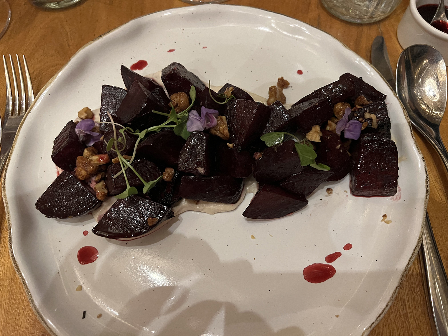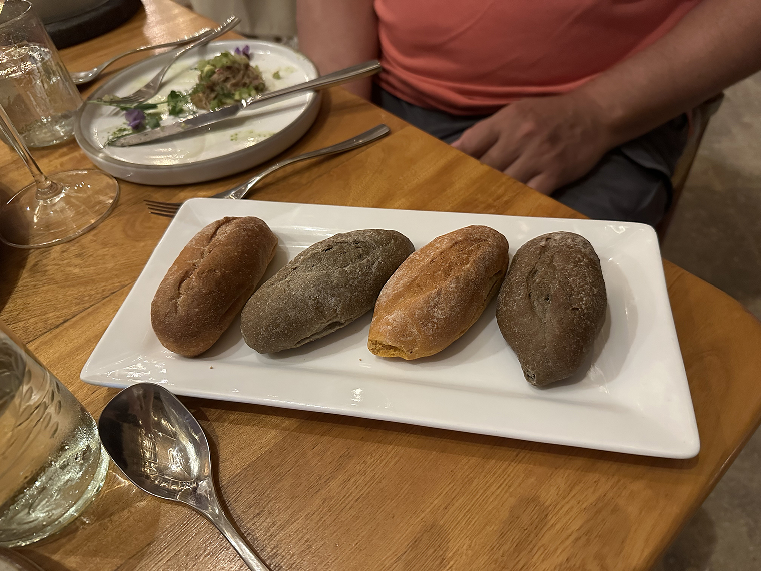 Beth and I had been at the restaurant in June and Chef Edgar had prepared for us a special tasting menu to sample the style and flavors available at the restaurant along with wines to pair with each course. This was the first time that we had been back to order from the actual menu. It is one of the few fine dining restaurants that also offers true vegan items for each course on the menu (and is listed in Happy Cow, the app for vegans and vegetarians). As Michele has a number of dietary restrictions this was the perfect restaurant choice for her.
