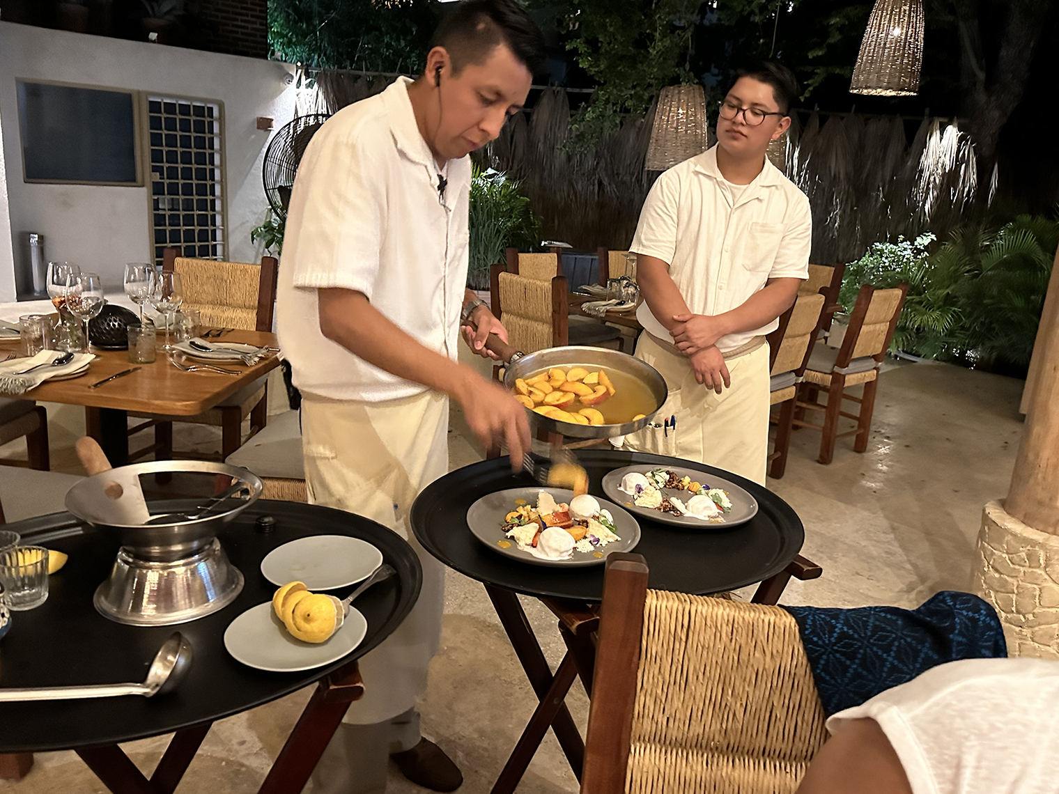 Our guests from Colorado, Mike and Michele said that they wanted to have a special dinner one night during their stay with us. There was no question that the best fine dining location in San Jose del Cabo is Don Sanchez. Just over a year ago, Chef Edgar Ramon and the Edith’s Restaurant Group had acquired Don Sanchez and moved the restaurant across the street from its original location on Blvd Antonio Mijares just a few steps from the plaza in San Jose del Cabo. They took just over six months to completely renovate the space and create an amazing Baja based restaurant. Don Sanchez includes a bar and lounge, a private wine dining room and two levels of outdoor dining – one of which is under a large palapa. All of the design elements – artwork, lighting, furniture was created in Baja. The space and atmosphere are incredible. But the atmosphere is outdone by the quality of the food and the service.