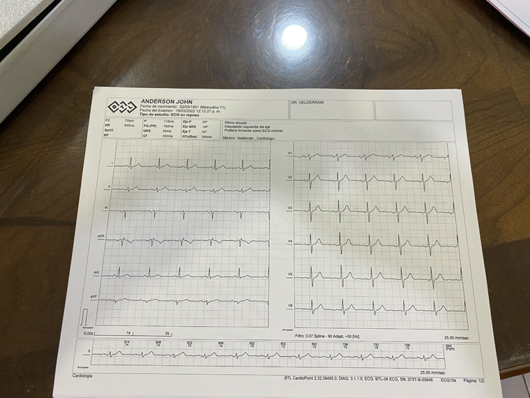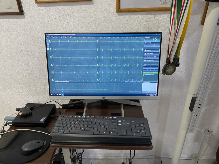 It was easy to get an appointment and if blood tests are needed there is a lab attached to the practice. The office is in El Chamisal, just up the street from Guacamayas restaurant. I was able to take the results of a recent blood test with me. As this was our first appointment, he initially asked me a full range of questions about the state of my health, my lifestyle and my current medications. When this was finished, I was taken over to a bed to lay down and have the electrodes attached to my ankles and chest for an electro- cardiogram. Dr. Velderrain commented on the abundance of chest hair which initially made it difficult to get a good connection. Following the ECG, he also performed a sonogram to check the shape and state of my heart.