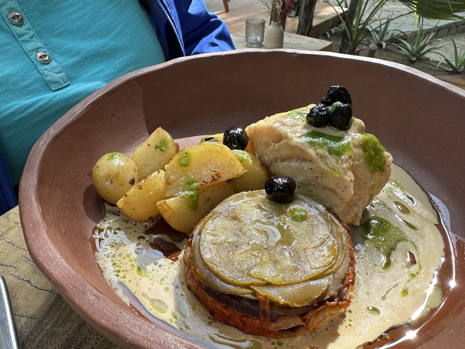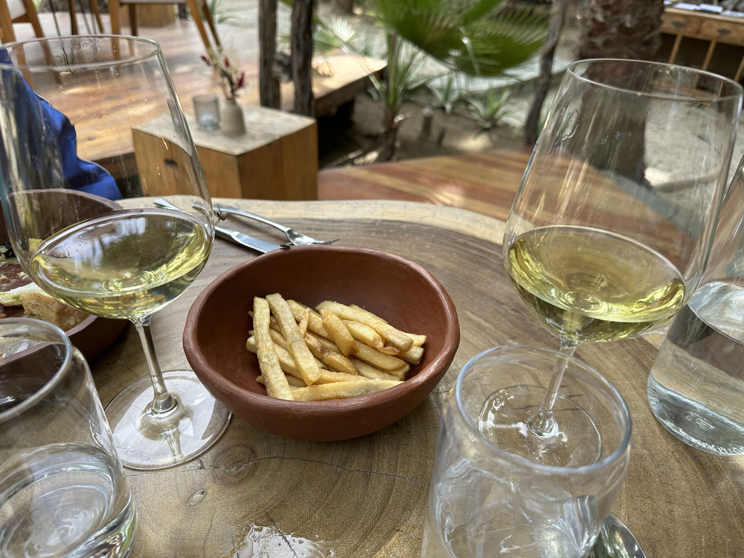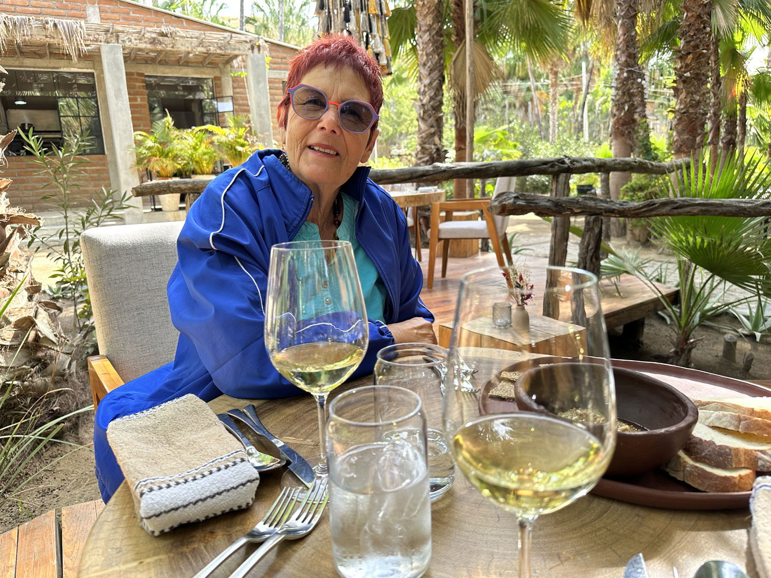 Last year when I asked Ezra Katz, the artist what restaurants we should try in Todos Santos, his first suggestion was Dum. Dum had participated in both Sabor a Cabo and Gastrovino Baja where I had the chance to sample a little of their food. So, when I need a place to meet Sharon Katz, the South African musician, singer, and social activist in Todos Santos, I suggest that we have lunch at Dum. It was not easy to find as it is at the end of Centenario on a dirt road, which runs parallel to Benito Juarez, the main street of Todos Santos. The road ends in the lower parking lot of Docecuarenta.