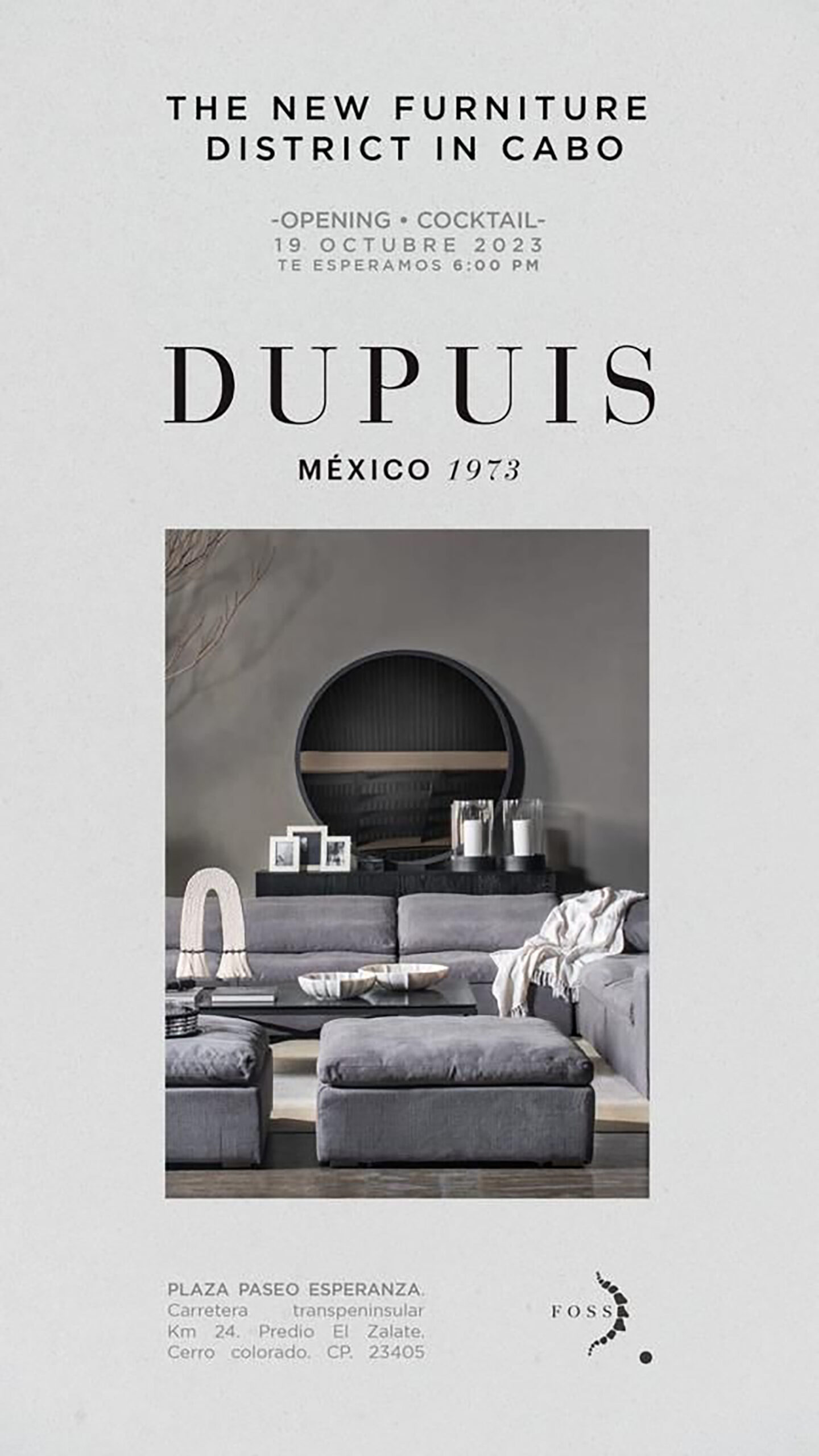 We watched with interest and curiosity as a new building was being constructed in the Fresko shopping center just south of Palmilla. As it was being completed, the signs went up saying “Dupuis Mexico 1973”. I went online and did a search and learned that Dupuis was a furniture and interior design company that was founded in Mexico. Its ambition was to marry traditional artisanal and modern Mexican designs to create unique furniture and accessories for the luxury market. Their philosophy is to continually evolve and innovate with the furniture and accessories that they offer.