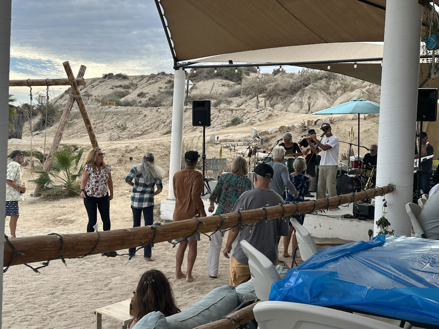It was an absolute pleasure to watch Extra Large while we ate and drank. The six-piece band is full of life. Russell Leal, the lead singer, who also plays flute, saxophone and guitar as he dances around the stage. He gets people to get up and dance and performs in the middle of them with his wireless microphone. It was an amazing show.There was even a guy sitting up on the hillside above Shade with a cooler watching the show.