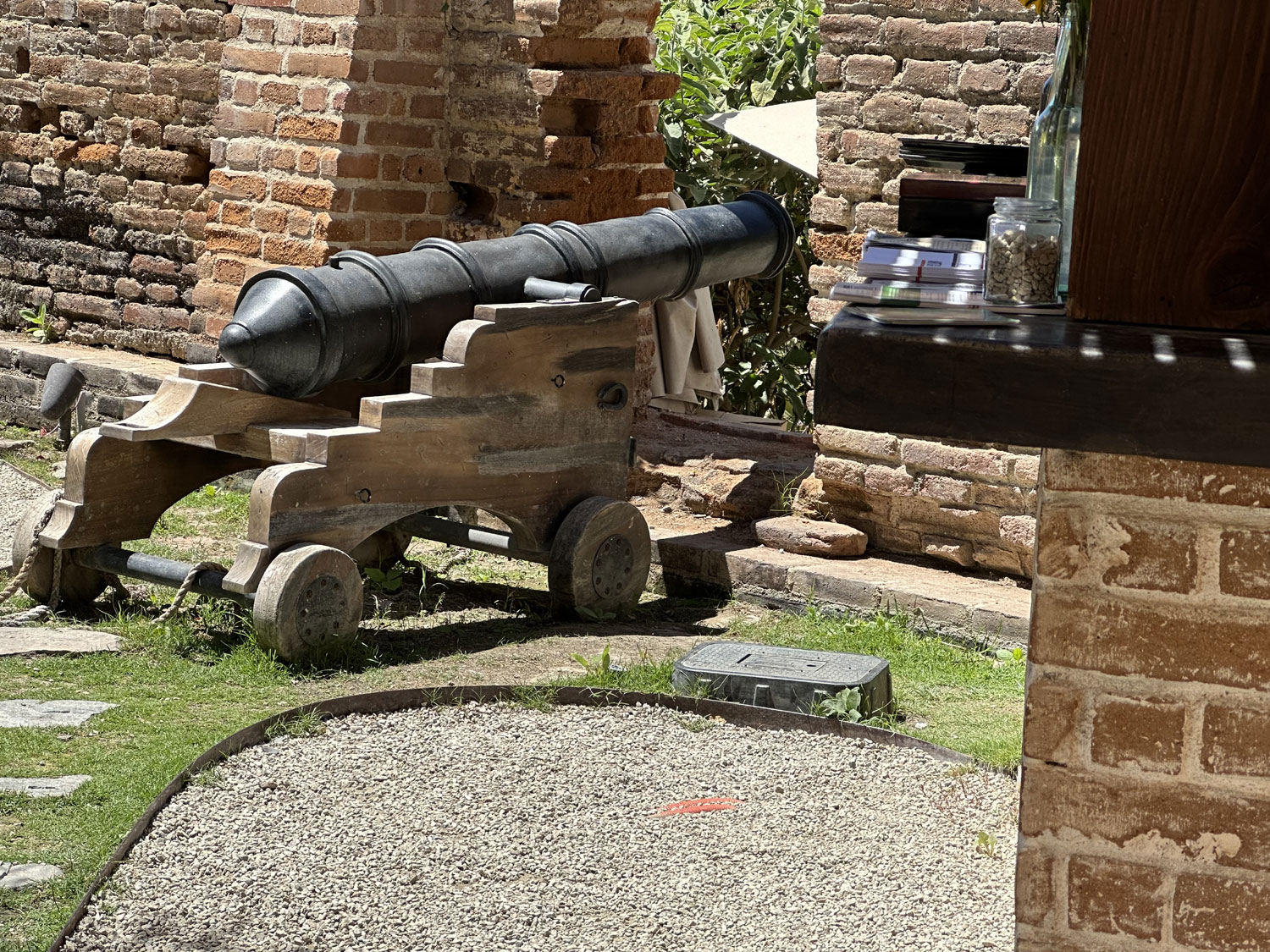 Further down the property, it is possible to see that it extends to the road that goes from downtown Todos Santos through the arroyo to northern Todos Santos. In the space are a number of areas already planned an in progress. There is currently a dog park that is open. An amphitheater is in the process of being built where concerts can be held and there is an exhibit space, where their current art event is being held that is advertised at the front doors. There is ample parking down in this lower area to accommodate guests for the events frequently held on the property.