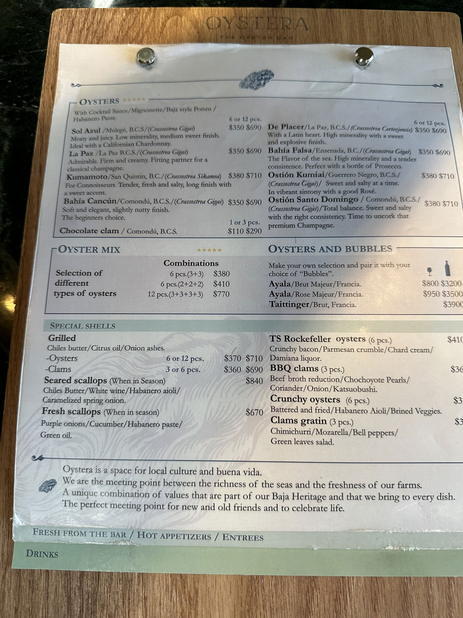 One of my morning rituals is to wish a happy birthday to my Facebook friends. Recently, one of those was Abe Juarez, who said thank you and suggested that we meet. I looked up his profile and found out that he was associated with Oystera in Todos Santos. On our regular trips to Todos Santos for music, I had watched Oystera being built with the care of making it look like an original building in the town. I was always curious but as we are not big fans of raw oysters, we hadn’t stopped in yet on our trips to Todos Santos from San Jose del Cabo.