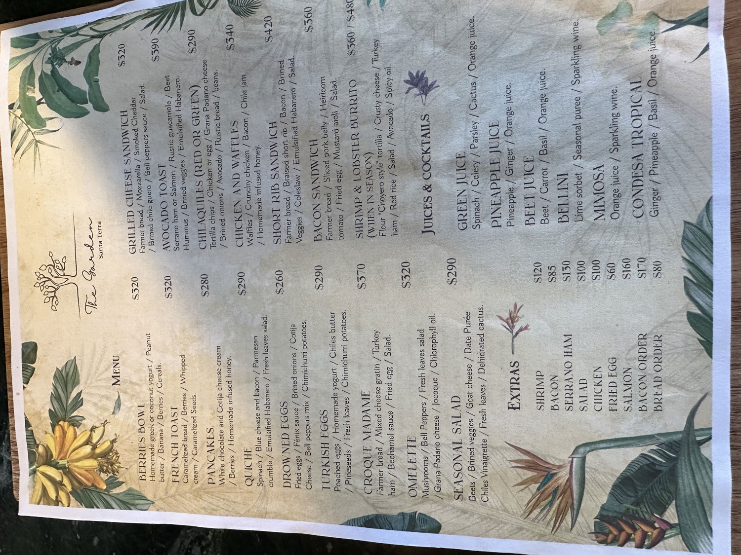 We walked back up to the restaurant, where Abe’s two sons were patiently waiting (Sunday is his normal day off). He introduced me to Pablo, the Food and Beverage Manager, César an incredible waiter and Jorge behind the bar and said that he wanted me to taste a few of the foods on the menu. Asking if I had any allergies or things that I didn’t eat, I mentioned that as a kid from Calgary, in the middle of Alberta beef country, I had never become a fan of raw clams, oysters or mussels. Pancho said trust us and we will bring you some tasting size portions of a number of the items from our menu. The menu itself is quite extensive and is the creation of Chef Poncho Cadena, a fourth generation chef fusing the gastronomy of Mexico and France. Chef Poncho also had formal training at the Pacific Culinary Arts School in Vancouver, where he worked in a number of restaurants followed by time in Europe. His unique style is evident in the dishes on the menu.