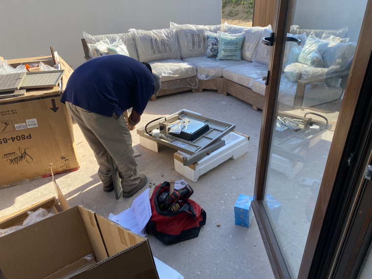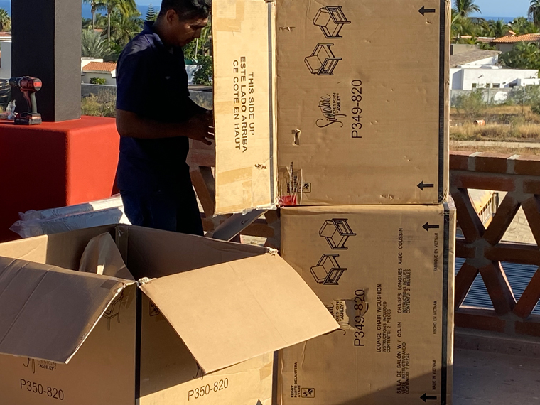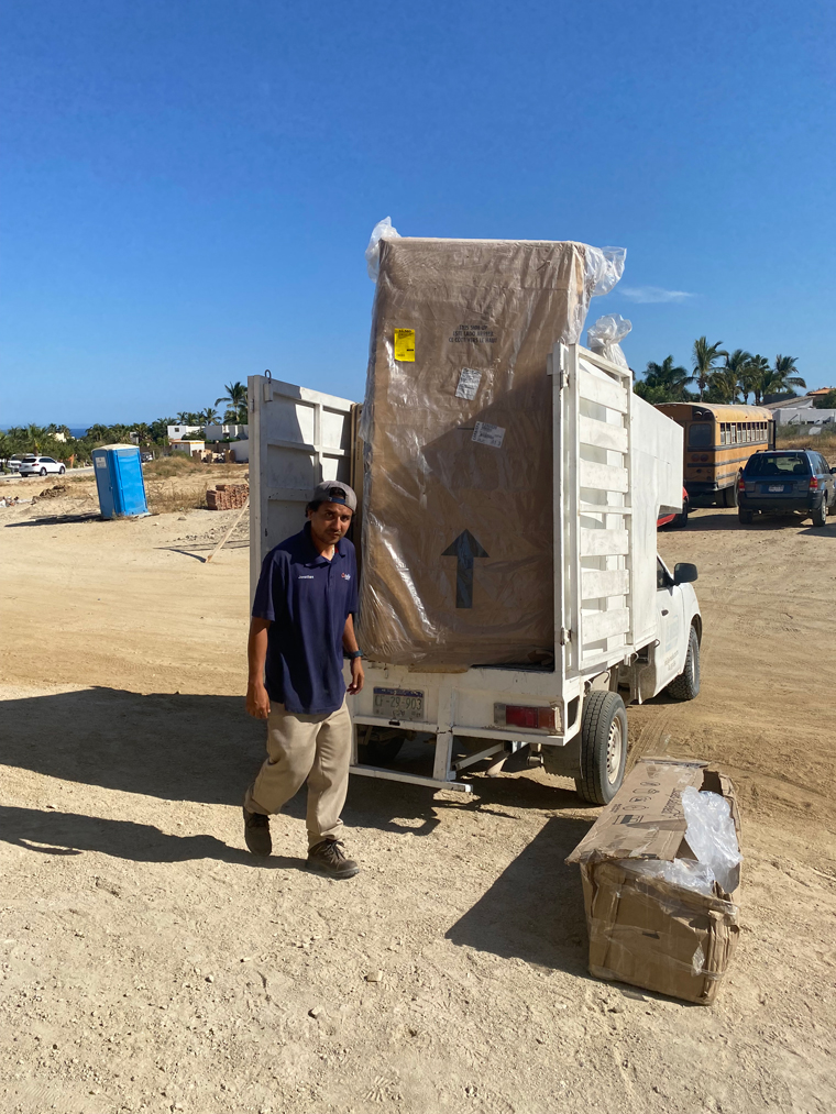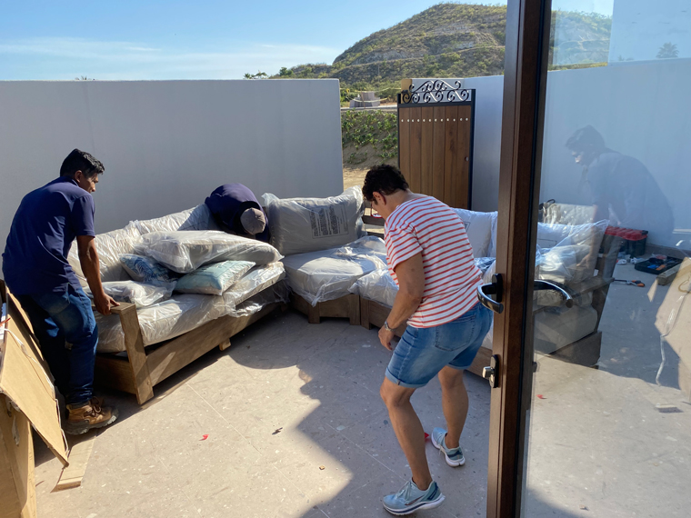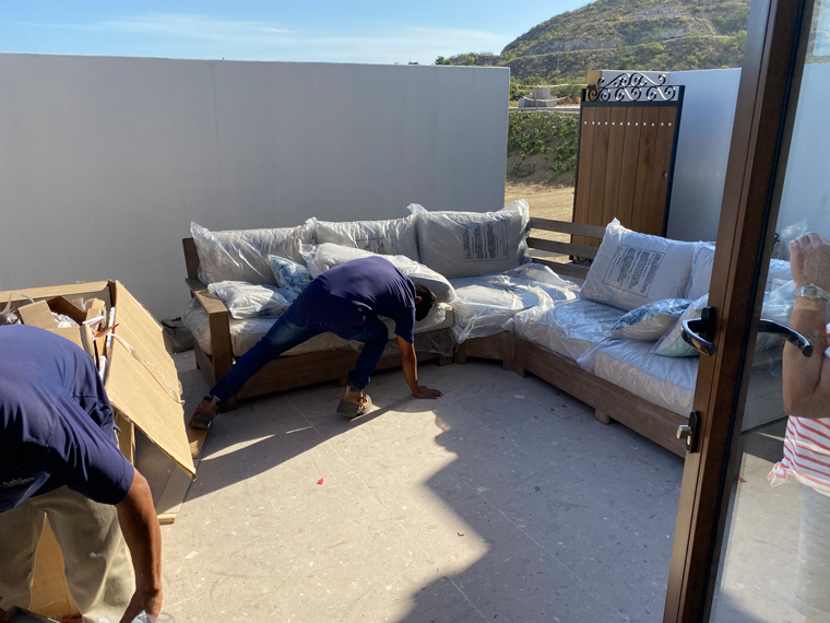 There is nothing like being in the process of moving in to a new home. As we sold our house on the beach in Zacatitos fully furnished, we were starting from scratch. One of our main suppliers was Ashley Furniture Homestore in San Jose del Cabo on the frontage road before La Comer. Franck and Jay had been incredibly helpful to us in our search for outdoor furniture, mattresses and accessories. As we were getting close to being ready we let them know and a delivery date was arranged. Because of delays in the construction and our occupancy date, Ashley stored everything until it could be delivered.
