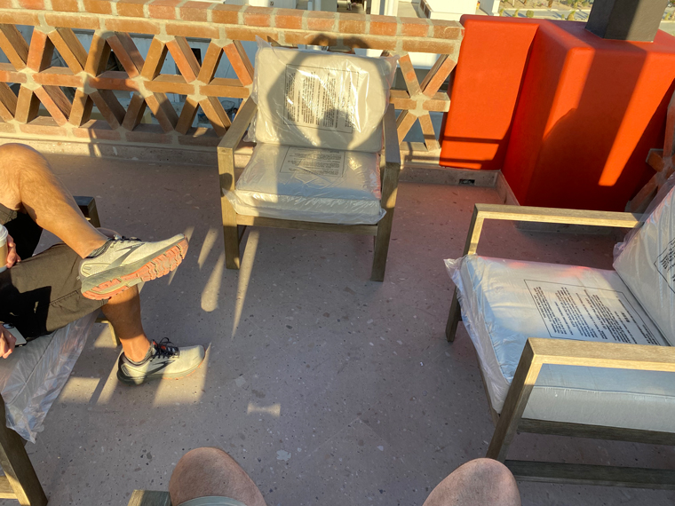 They arrived exactly at the time that we were given. This delivery included an L-shaped outdoor sofa, a fire pit, four outdoor chairs, two king size mattresses and lamps for each of the two master suites and a sofa bed for the second bedroom (my office). Most of Ashley’s furniture comes unassembled. The team doing the delivery unboxes and puts together all of the furniture and sets it in place where you want it. In this case, it involved three different floors of furniture. They unbox, unwrap and place all of the items and then take all of the packaging with them when they leave. The team was well trained, helpful and polite.