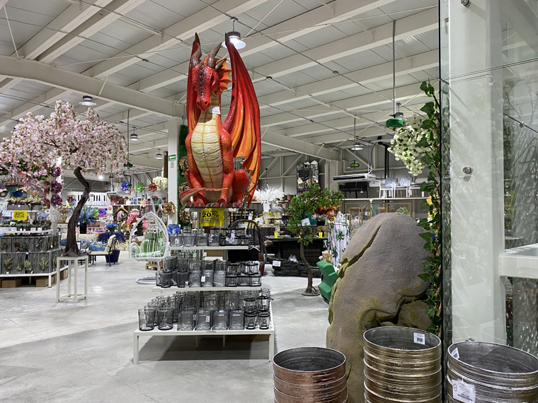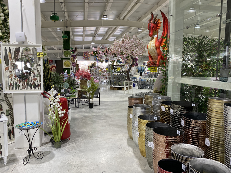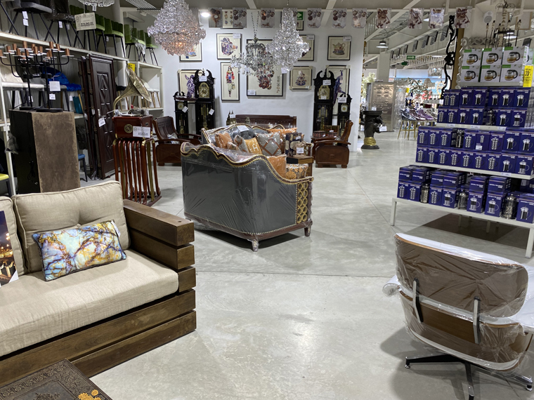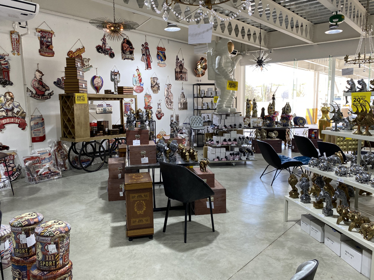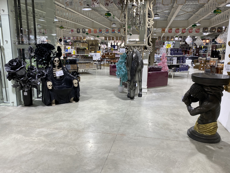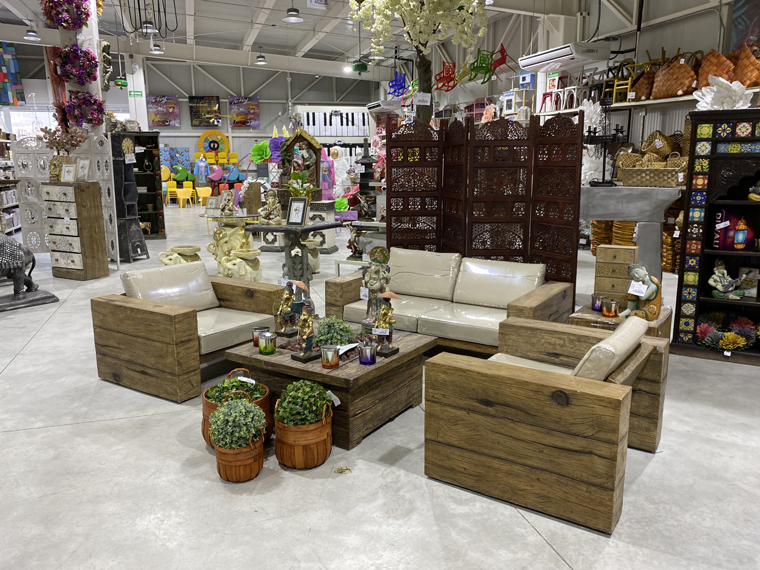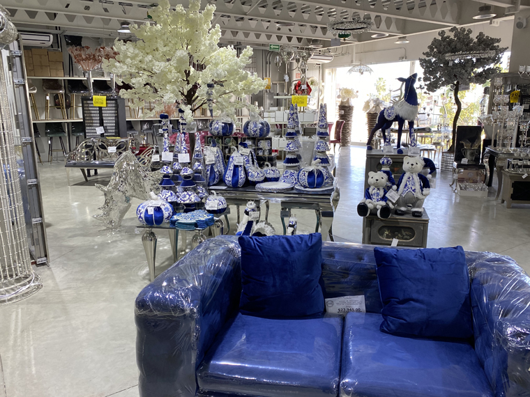 In our search for furniture for our new townhouse, we have been exploring all of the furniture, appliances, lighting, and related stores in Los Cabos.  Opening just a few months ago on the frontage road between Costco and the Walmart shopping center is a three-story furniture and accessories store, Galerias El Triunfo.  For those of you who don’t know, El Triunfo is the historic silver mining town south of La Paz.  Well, this store is anything but traditional.  We felt like we were visiting a kitschy place on Melrose in Los Angeles.