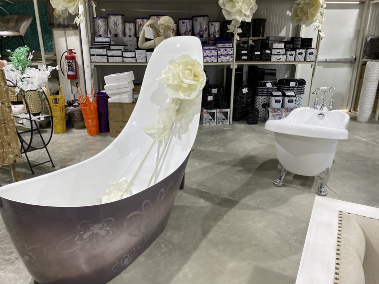 The furniture has a little bit for every room – sofas, dining tables, bedroom sets, and even bathtubs.  There is every type of accessory that you could think of – dishes, artwork, statues.  You can even get a 10+ foot boa constrictor statue around the base of a tree, a five-foot-high dragon, a life-size Elvis, an Astronaut, or a Pirate.  There are even accessories for your game room – pool, foosball, craps table, and more.
