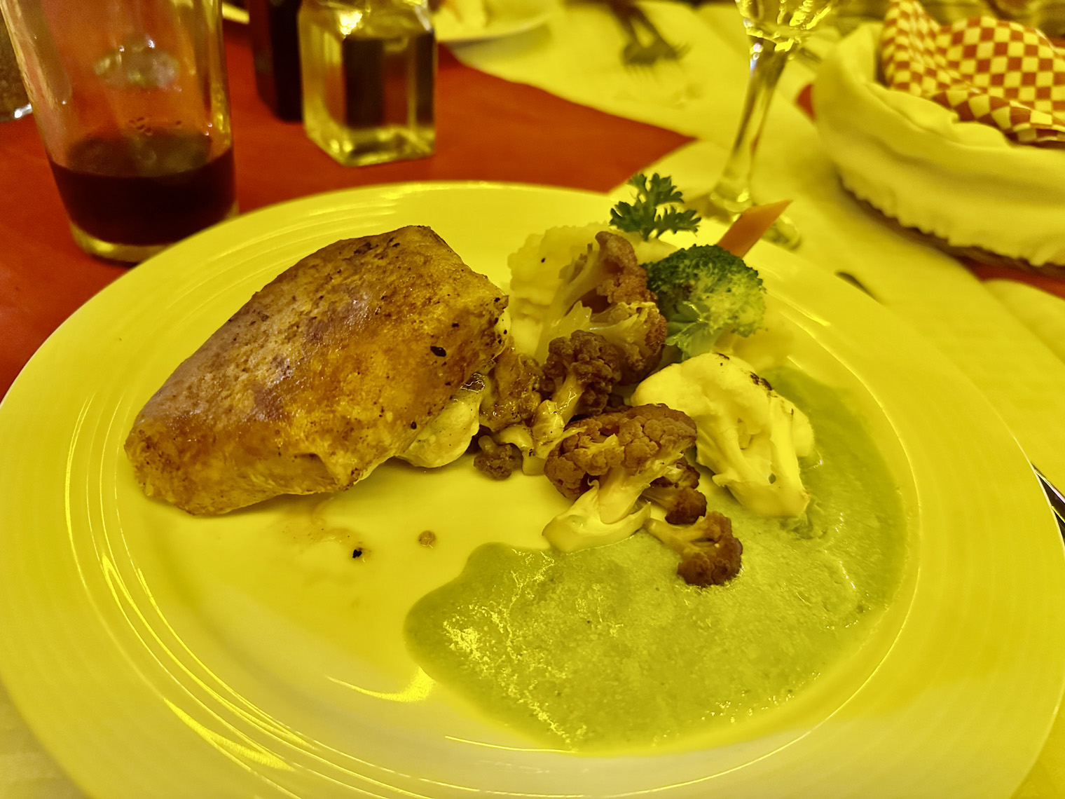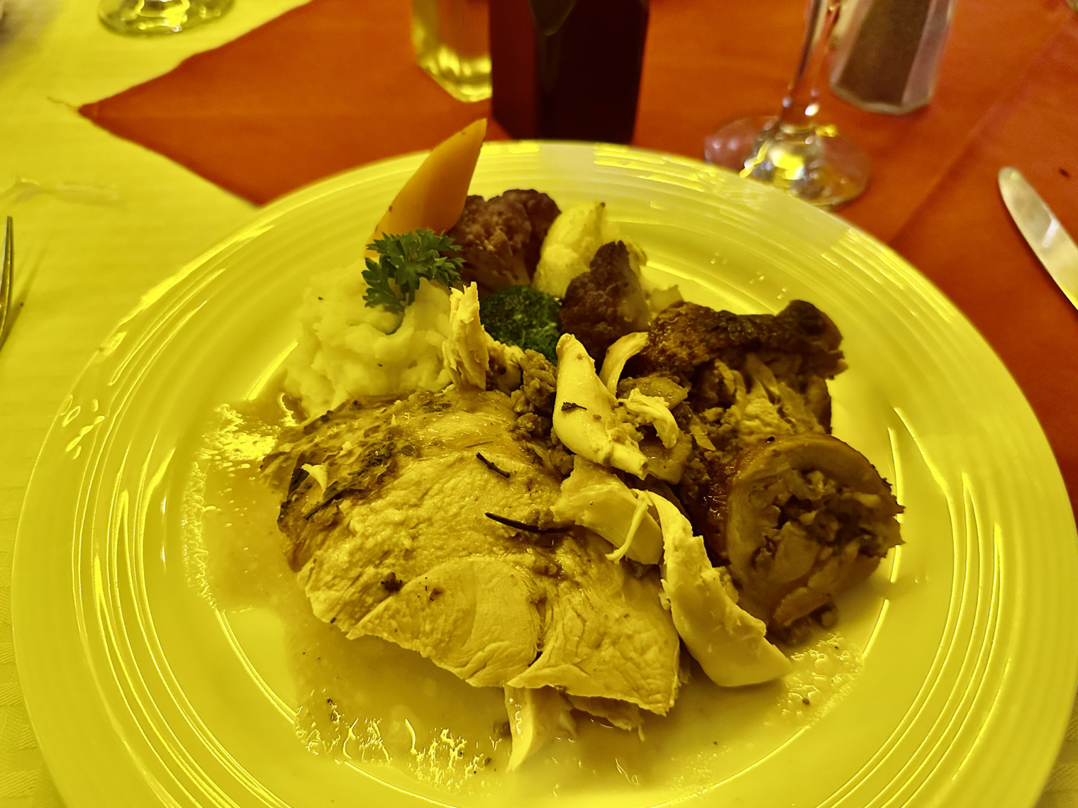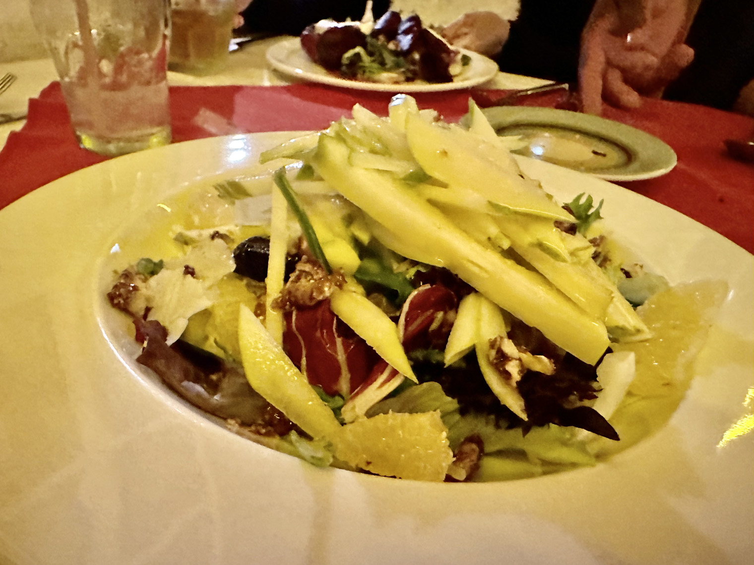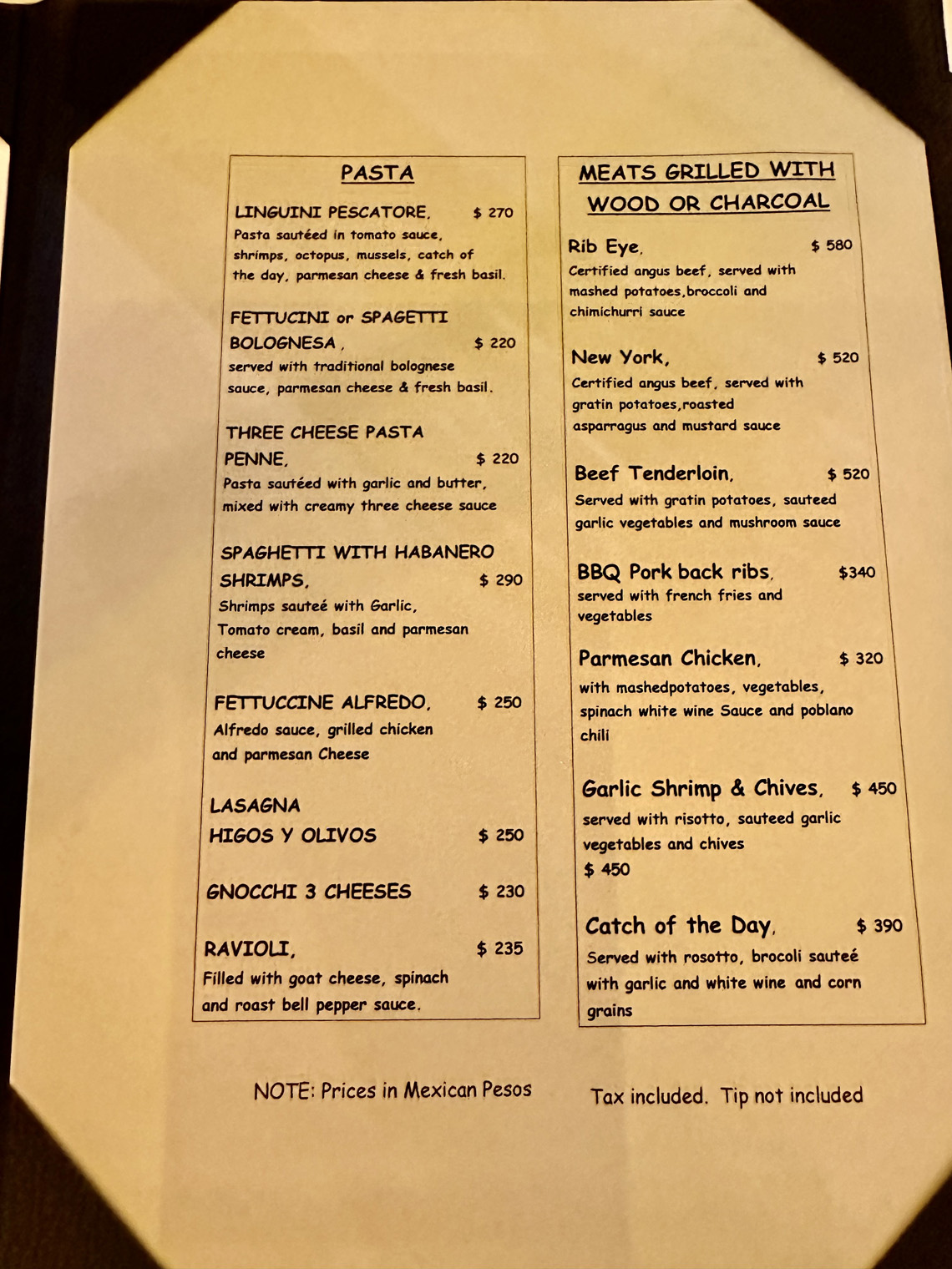 Located right at the arroyo before Artisanos, just east of Cabo San Lucas on the frontage road, Higos Y Olivos offers both inside and outside dining for breakfast, lunch, and dinner. We met our friends, Bill and Tanya and Tanya’s mother, Dianne there for dinner. Our host, Fatima was as charming as ever as we were seated in one of the two rooms inside the old house that has been converted into a restaurant.