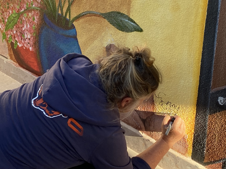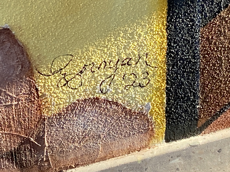 I first met Holly Heiser Hornyan at an Art and Mezcal event at Acre a few years ago.  She was displaying a range of her paintings.  I was interested and so we met and she told me a little about her background.  Holly told me that she has always been interested in art and even started her post-secondary education at art school.  However, the needed to make a living, which led her to audiology, where she pursued and completed a Master’s degree to be able to practice.  But she had always kept that interested in art in its many forms.  She had a faux painting business in Denver, creating unique looks for people’s homes, where she would commission artist to do murals if her clients wanted them.  Her interest in art expanded to include tattooing and so she took the courses necessary to get licensed as a tattoo artist and used her husband’s skin as a canvas.