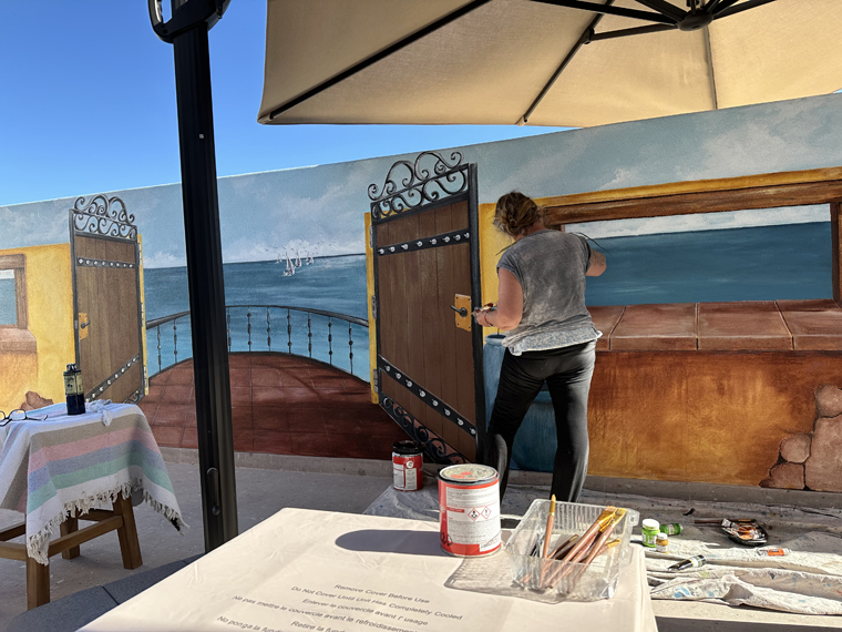 When she and her husband, Derrick Hornyan, a professional photographer had a long term goal of moving to Los Cabos and when they decided it was finally the time to pursue their dreams, they packed up and moved.  Initially, she flew back and forth to the United States as a consultant in Audiology.  But this became a bit too much and so her career changed once again to time share sales in Cabo San Lucas.  Throughout all of this, her interest in art continued to grow and she started to paint again.