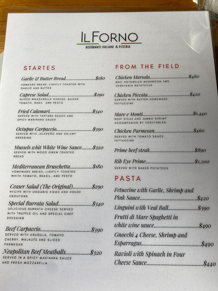 The first Il Forno Ristorante Italiano open in Cabo San Lucas six years ago. With great pizza and increasing demand Chef Luigi Cavanna opened a larger location in November 2019 in Medano only to close due the COVID pandemic at the end of March 2020. Two weeks ago, a new location was opened in the Art District in San Jose del Cabo. We had seen the grand opening announcements and then neighbors from Zacatitos – Karen Herr and Tom Montgomery – went and just raved about it. So we knew we had to go. With Hurricane Kay on the way, we decided to go on Monday night (September 5th, 2022).