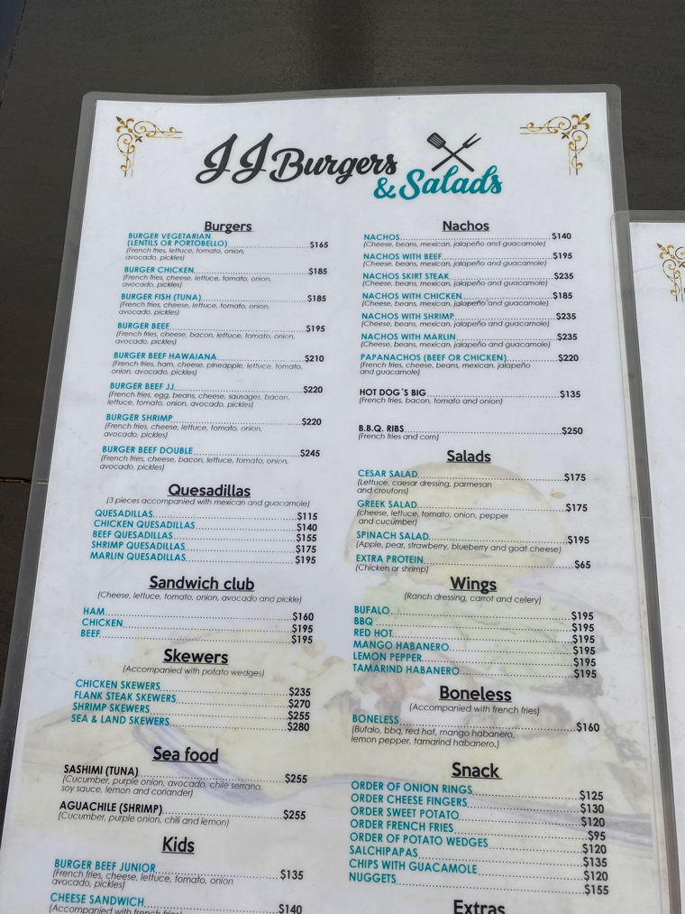 Tucked away in the small plaza across from Barcelo along with Le Bar, Corleone Pizzeria and Friendly’s Ice Cream is JJ Burgers & Salads. This small family run restaurant offers a full range of beef, chicken, tuna, shrimp and vegetarian burgers as well as quesadillas, skewers, salads, sandwiches, sashimi and more. If you are just interested in snacks, JJ Burgers has wings, nachos, chips and guacamole or great French fries.