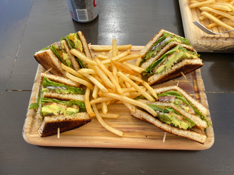 Beth and I stopped in for a quick lunch. She ordered the beef burger, which came with French fries and lettuce, tomatoes and onions. It also normally includes bacon and cheese, which she did not have. I ordered a vegetarian club sandwich. You normally have the choice of chicken, ham or beef with this sandwich as well. It too came with crispy French fries. The food was very good and the service was friendly by the daughter of the owner. If you’re looking for a place to stop for lunch or dinner, this is a good choice.