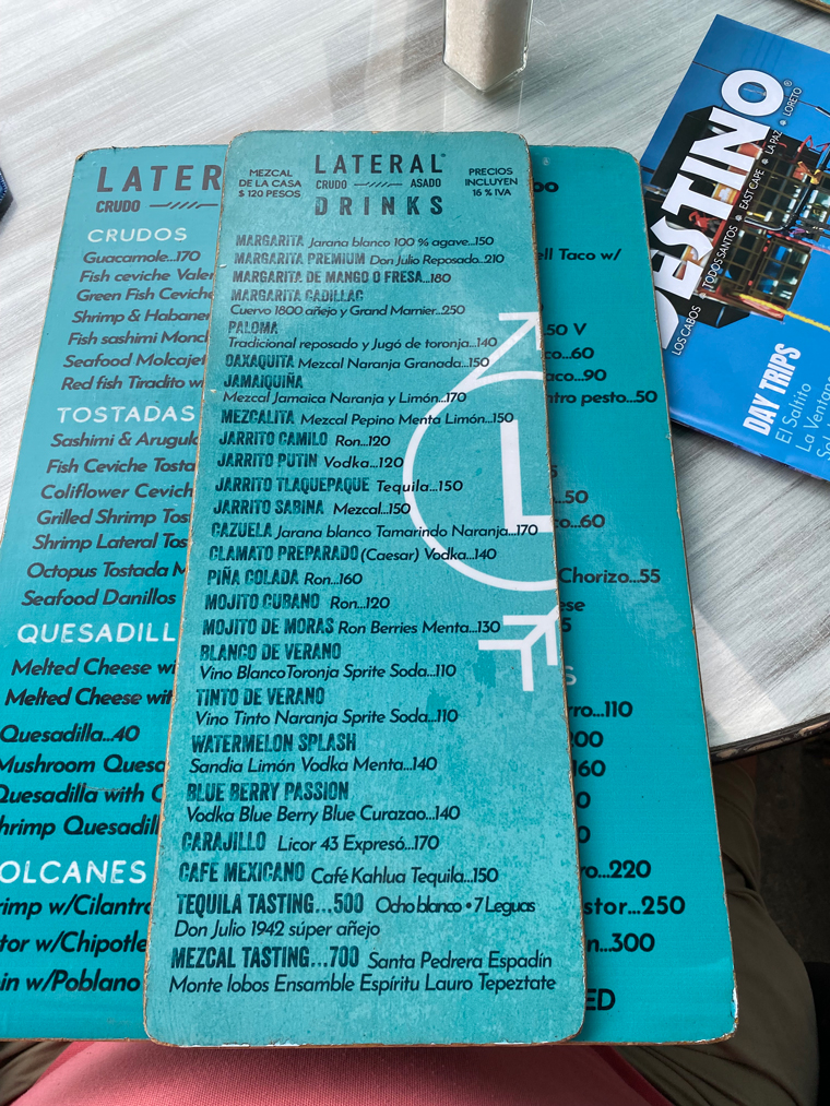 For more information on Lateral Crudo Y Asado visit them on Facebook at https://www.facebook.com/lateralcabo. They are open from 8:00am to 11:00pm seven days a week.