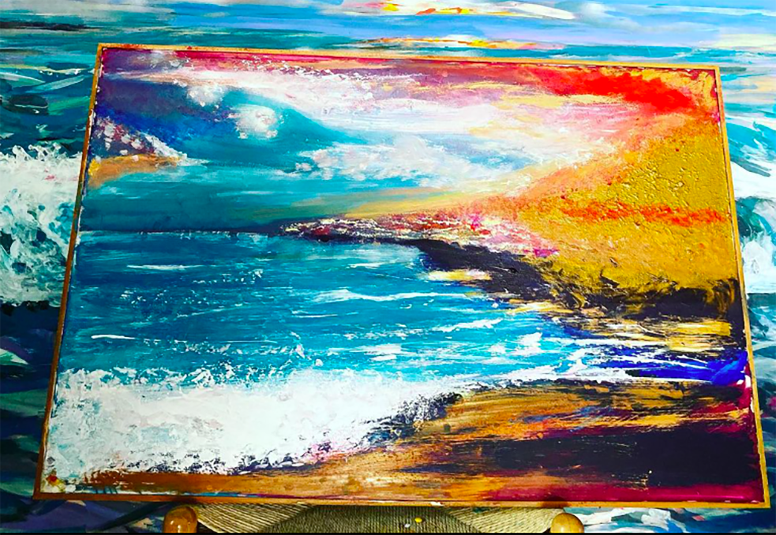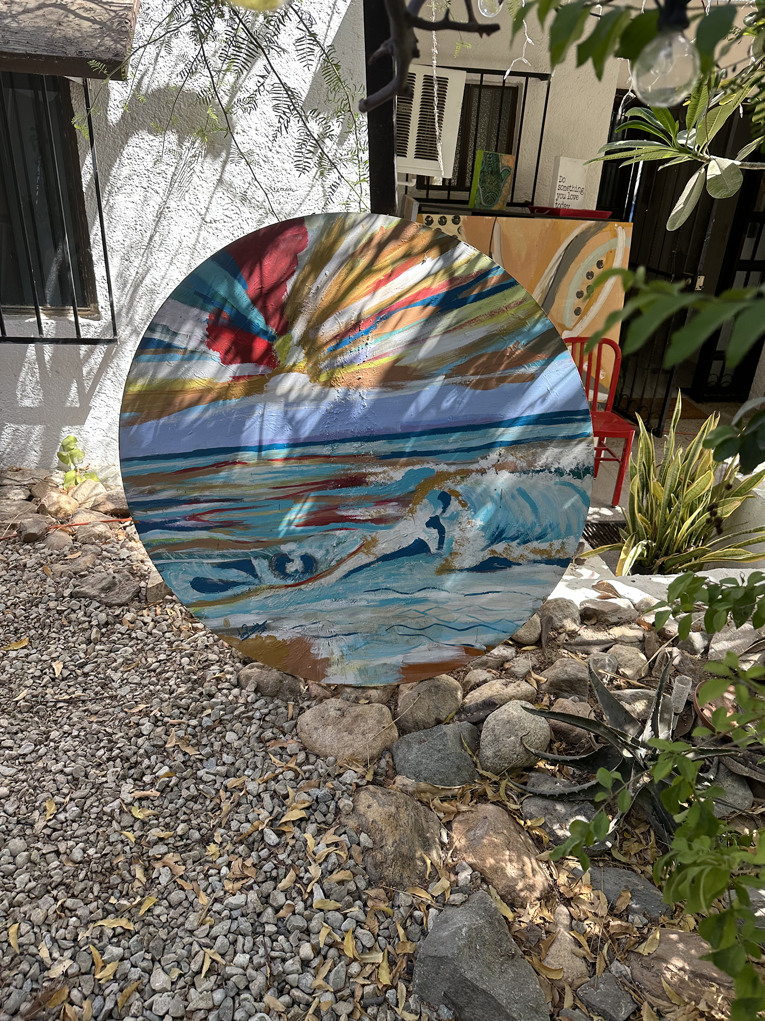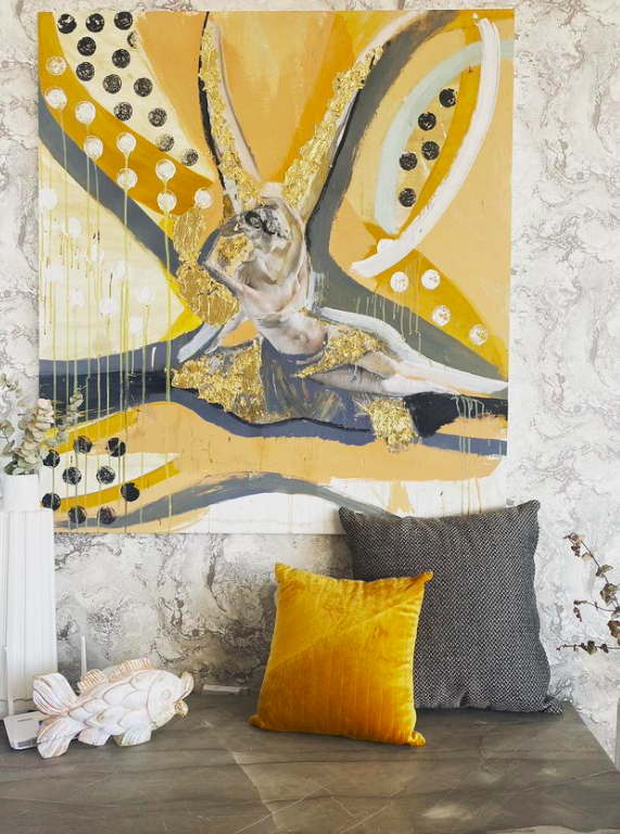 I recently had the opportunity to meet Lorena Salas in her home studio in Magisterial in San Jose del Cabo. Lorena was born in Venezuela and trained as a fashion designer at Roman Valecillos Art School. At the time, it was not easy to live and work in Venezuela as a fashion designer and so Lorena also learned to work as a Mixologist and Sommelier and moved to Argentina where so did a number of different things. However, during this whole time, she painted and grew as an artist. Her art has been shown in Argentina, Columbia and here in Mexico.