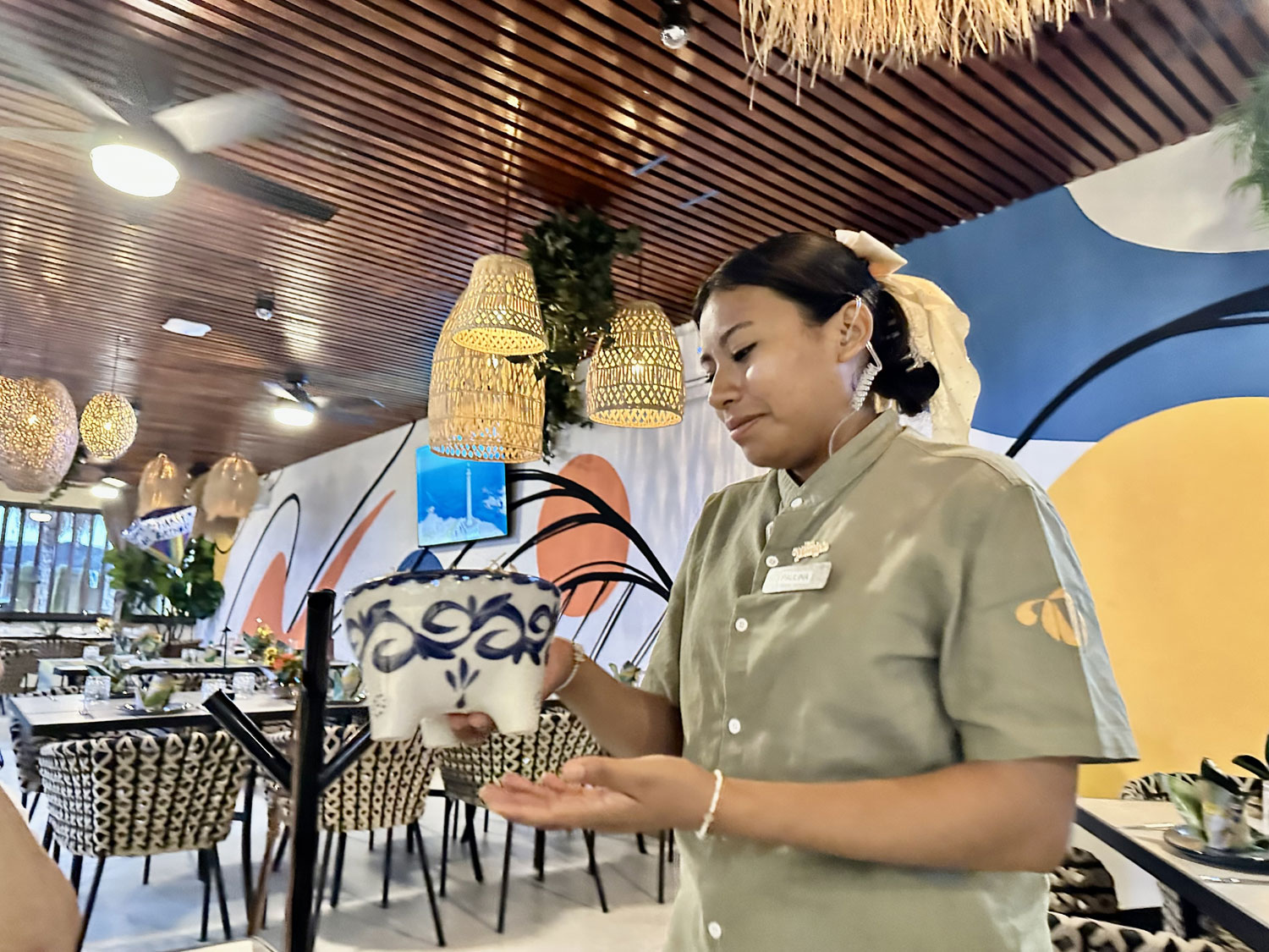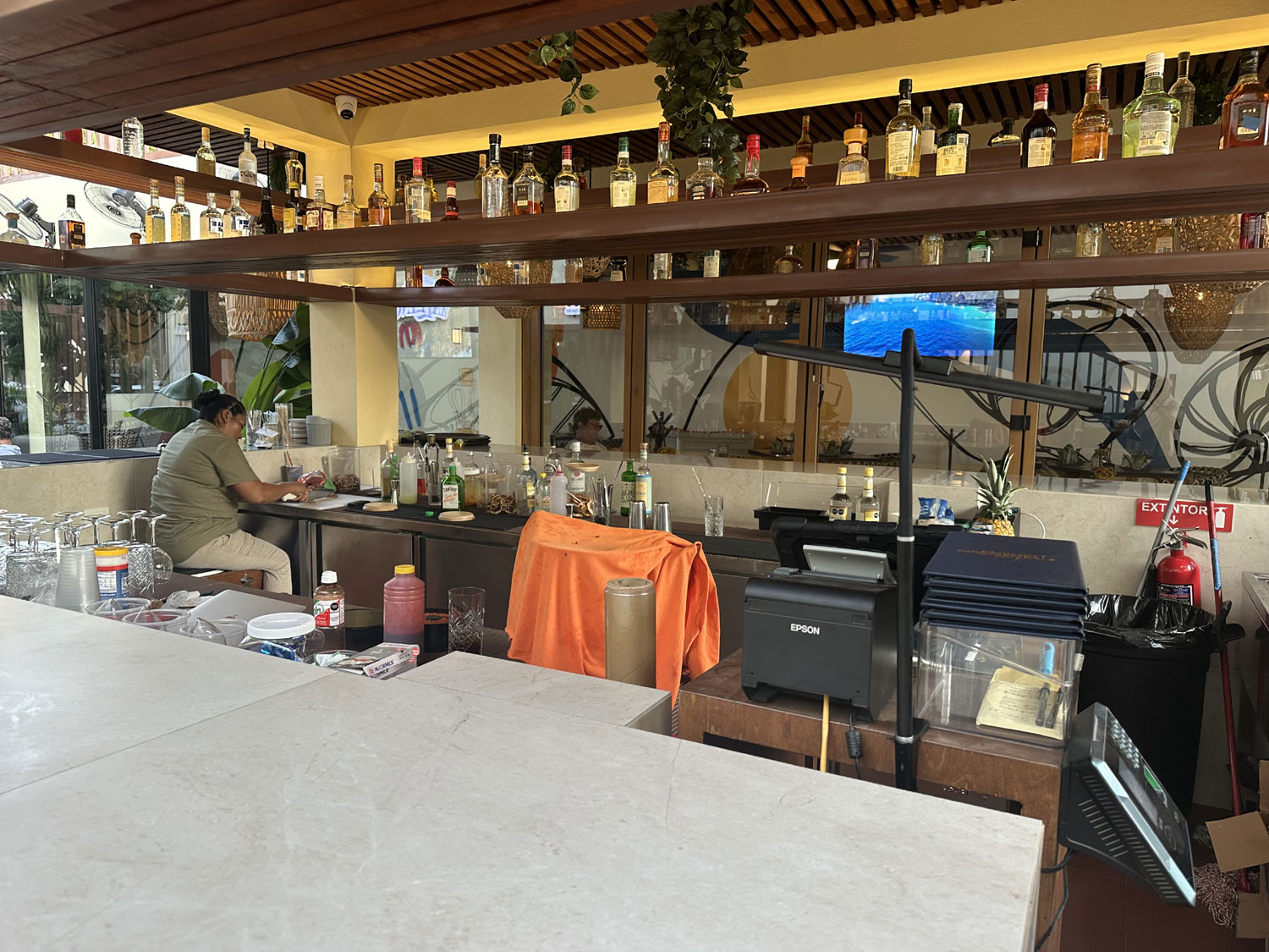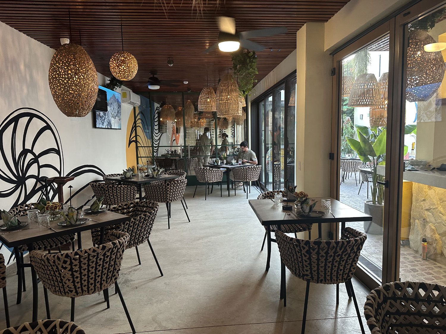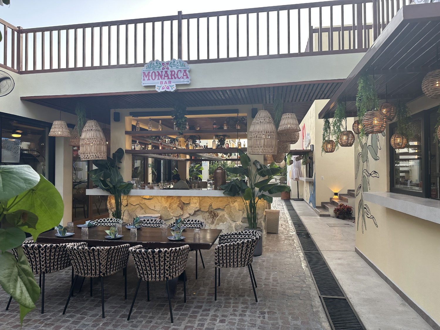 The small food park beside Teo’s Bar and Grill on Blvd Antonio Mijares has been completely re-imagined. With a complete build out of the space, diners can now choose from the combined menu of four different restaurants and dine either inside (air-conditioned), outside, or on the roof top. This new version opened on June 28th, 2025. Choose pizza and salad from Pizzeria Vallino; empanadas, steak and ribs from Muu Steak House; appetizers, hamburgers, tacos and more from Charo Negro and; Mexican food including ceviche, aguachile, and tostadas from El Capitan. All four menus are combined into a single menu with lots of drinks and cocktails from the central bar in the outside area from which to choose.