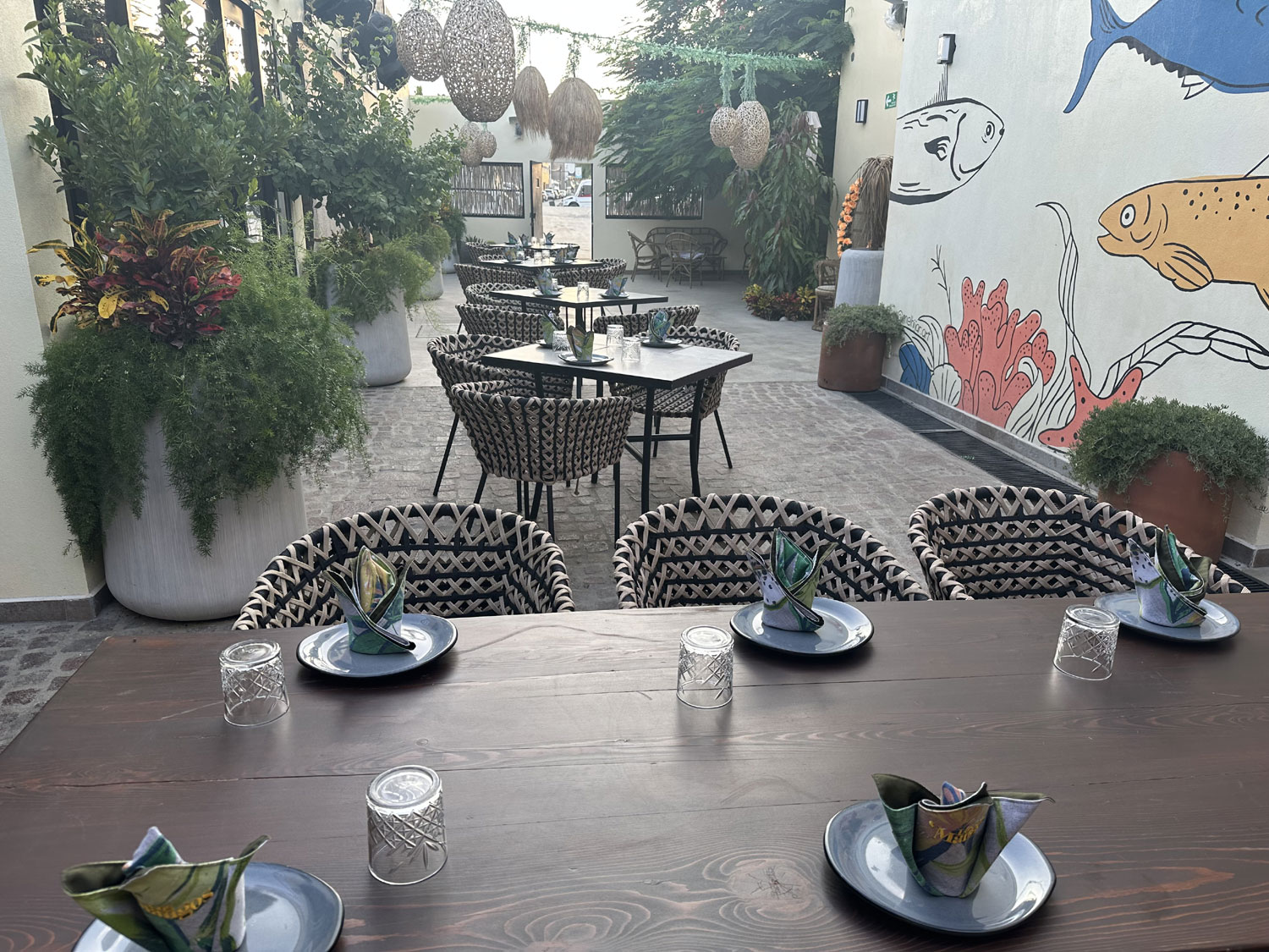 As the sun started to set, like many restaurants in Los Cabos, the lighting made the atmosphere even more pleasant. The seating and overall restaurant was very comfortable. The service excellent. The portions and large and reasonably priced. The back entrance to the restaurant lets you park in the lot of Blvd Antonio Mijares for easy access.