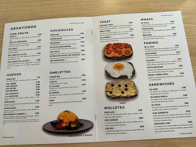 Looking for an air-conditioned restaurant to have breakfast (or lunch or dinner)? Malvarros Coffe & Food on Calle Paseo Malvarrosa (the street at the light one block from Valerio Gonzalez) is the place to go. This modern restaurant offers a wide range of breakfast choices – omelets, eggs, fruit, toast, and chilaquiles – as well as molletes, wraps, paninis and sandwiches. The lunch and dinner menu expands to soups, salads, fajitas, enchilladas, pasta, chicken, hamburgers, pizzas, nachos and even a children’s menu.