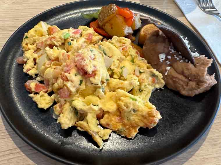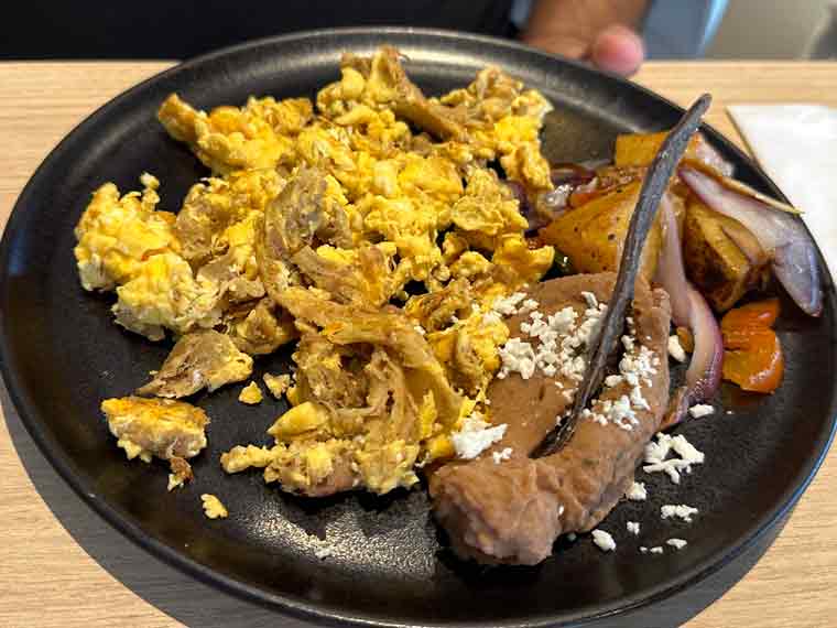 We arrived at 8:00am and the restaurant was fairly empty. However, with only about a dozen tables, the restaurant filled up completely during the breakfast hour. The service was attentive and fast. I ordered an orange juice and Huevos a la Mexicana and Alberto and Elizabeth ordered the Huevos con Machaca (a type of beef). The eggs came with refried beans and potatoes and vegetables. The food was very good and reasonably priced.