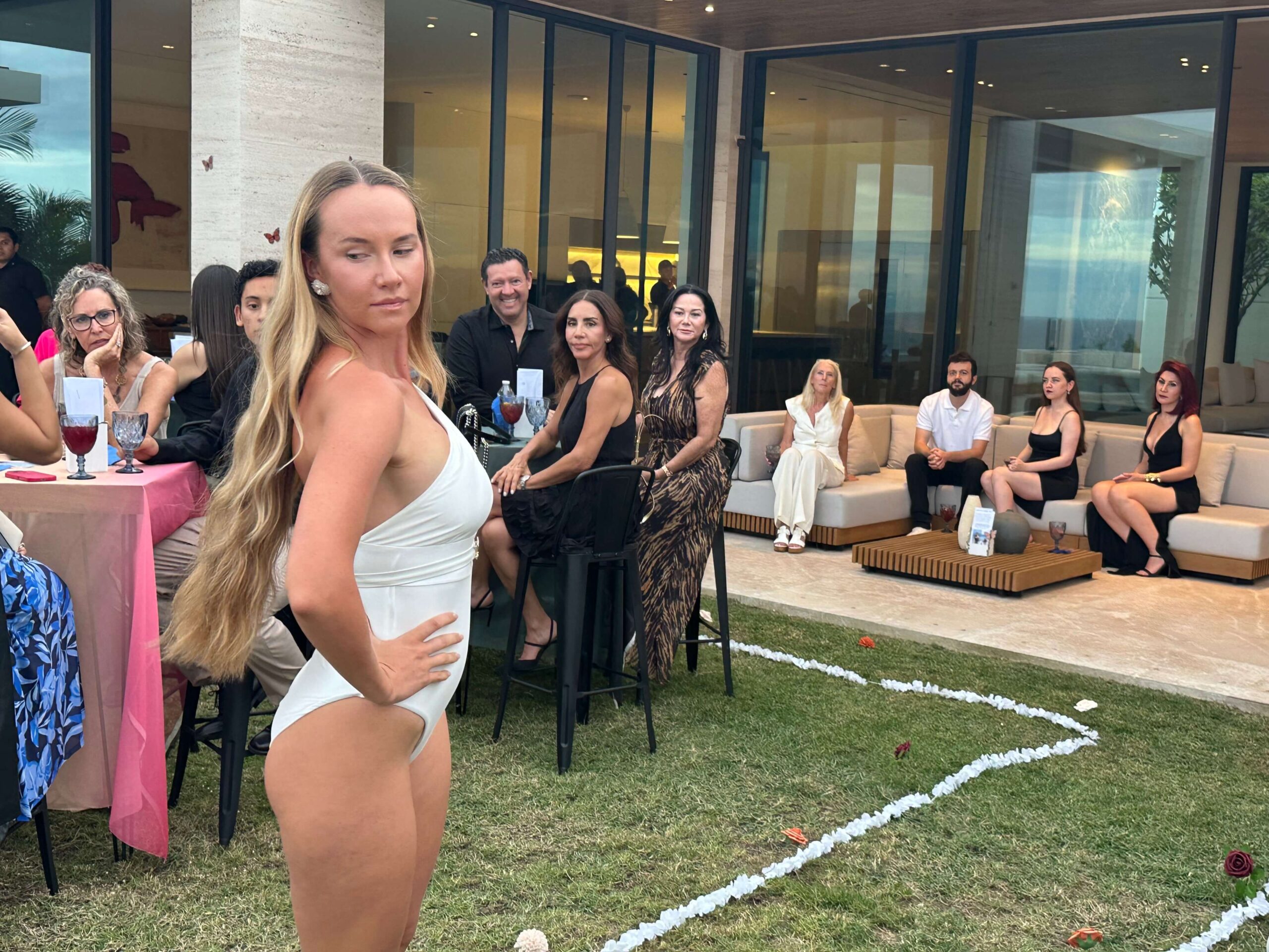 The launch of this partnership joined Monarch Swimwear and Monarch Effect Foundation in organizing a fashion show at Giorgia’s family home in Quarencia. Giorgia, and the two students that she is mentoring worked tirelessly to organize the event. Food preparation was organized with the help of the staff and volunteers of the Monarch Effect Foundation. After drinks and well-prepared appetizers, Giorgia Vela introduced the vision and the work that had gone into creating Monarch X Monarch. Ingunn Runnesto and Chris Monarch were in attendance to showcase the brand, talk about their commitment to the Monarch Effect Foundation and the share of the profits at both the event and from the specially-designed swimwear that would be donated to MEF. Six models walked the runway bordered with flowers in the backyard of the house in Querencia. The shared many of the different one and two-piece swimsuit designs and the elegant coverups that would make the wearers at home at the pool, beach, or even in the restaurant at a beach club.