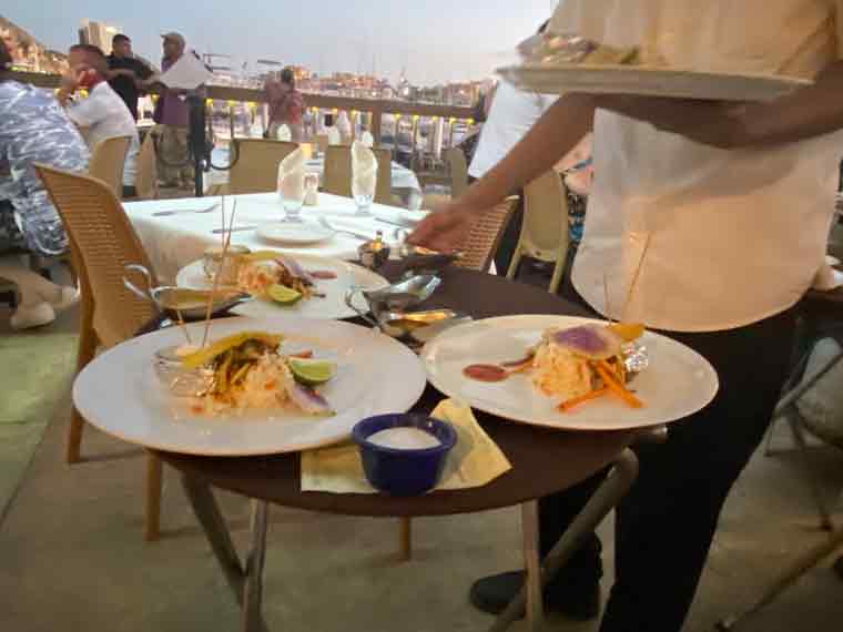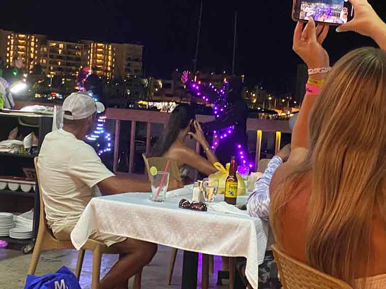 During our meal, we also were able to enjoy not only the view of the marina but the entertainment that passed by and stopped along the way. A great large mariachi band played in the front of the restaurant for a while. Followed by dancers with electric lights attached to their costumes.