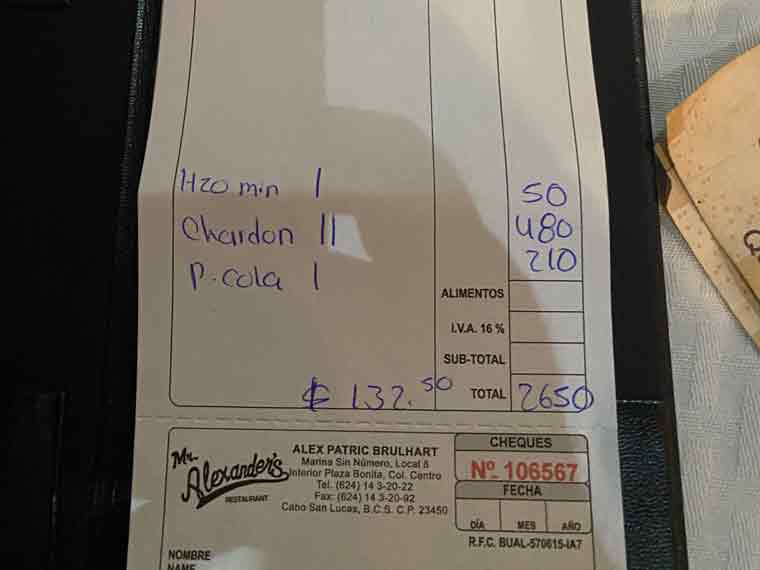 Recently, I had been seeing daily Facebook posts for a restaurant called Mr. Alexander on the marina in Cabo San Lucas. Because of the frequency and the newness of the Facebook page, I thought it was a new restaurant. So Beth and I decided to make a reservation and go for our 36th Anniversary.