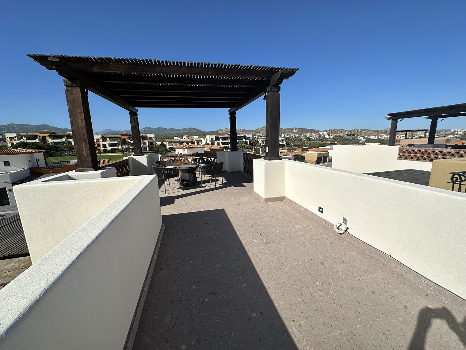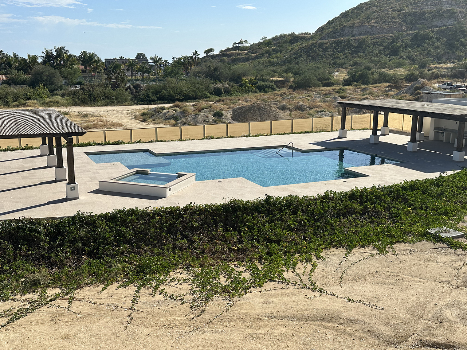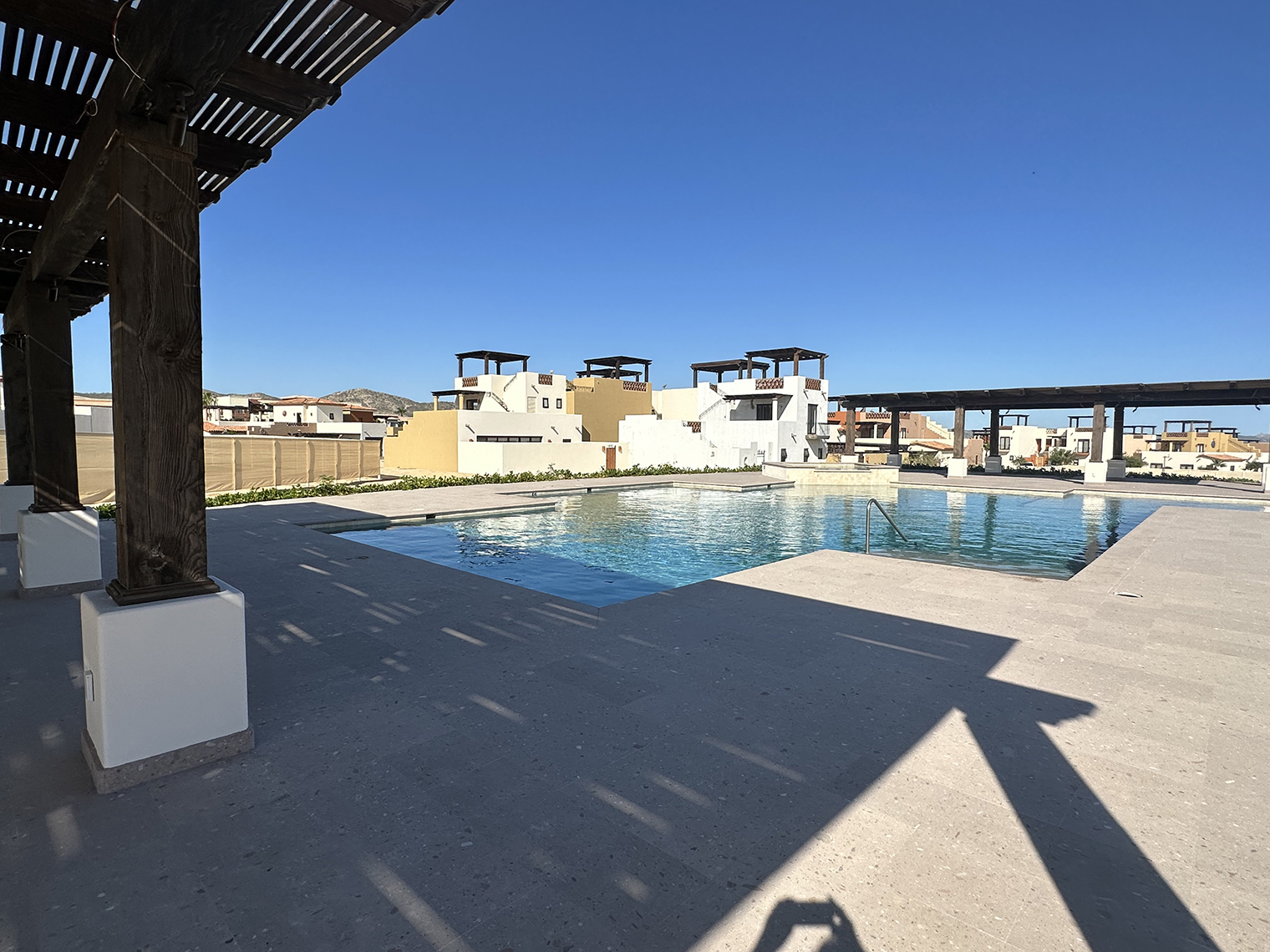 Phase 2 of Pueblo Campestre combines three different floor plans for townhouse and two different floor plans for Fairway homes. The newest townhomes are just stunning (we own one) and provide an amazing combination of indoor and outdoor spaces. One of our neighbors has just finished completely furnishing his Desierto model two-bedroom and two and a half bath unit. With three floors of outdoor space, these townhouses offer great views of the Sea of Cortez and the mountains of Los Cabos. Club Campestre is a development. that features a Jack Nicklaus 18-hole golf course, tennis courts and a beach club. Pueblo Campestre Phase 2 has its own large swimming pool, hot tub and outdoor area.