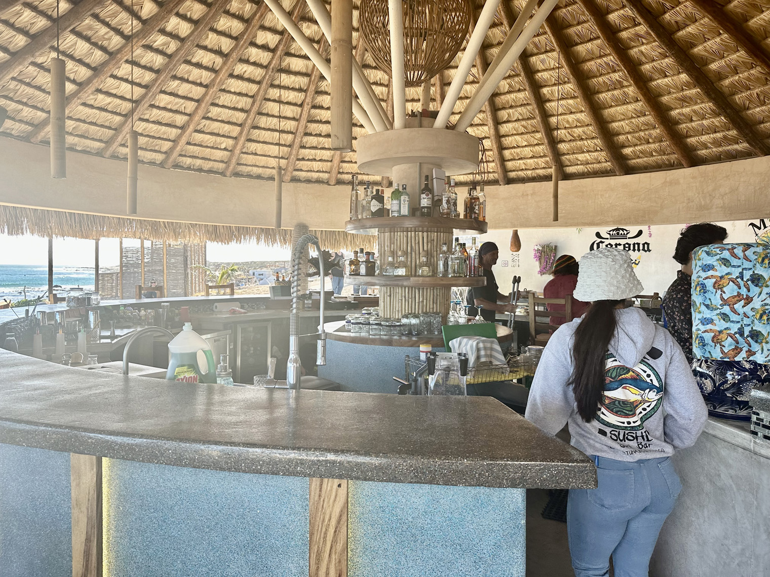 La Fortuna has recently become a center for food and drink on the East Cape. Starting with Zai Sushi Surf Bar, followed by Shade, Lateral La Fortuna, a weekend bar and a bus serving hamburgers, the newest addition is Ozzy’s Beach Bar. Named after Jason Manning’s (the sushi chef at Zai Sushi) dog, Ozzy and built by Jay Manning, one of the best contractors on the East Cape. Located in front of Zai Sushi, Ozzy’s Beach Bar has a huge palapa with a bar under it as well as tables and seating with views of the surf break at La Fortuna.