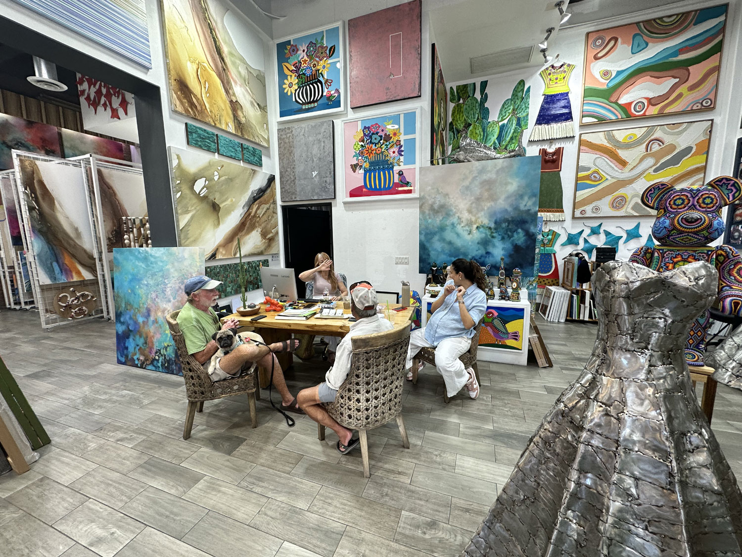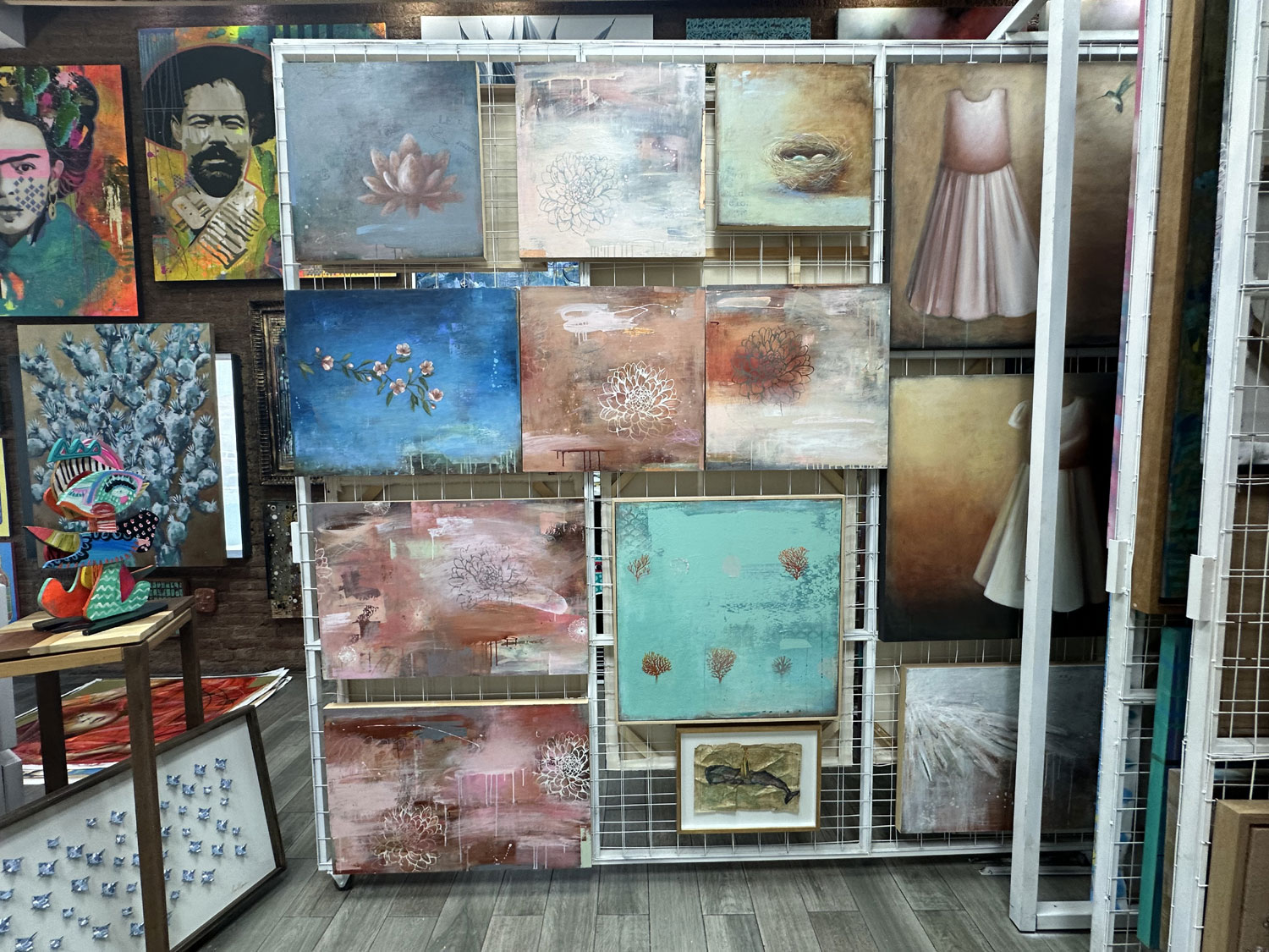 Pez Gordo Gallery celebrated its 25th Anniversary on April 11th, 2025. The Gallery original opened on Alvaro Obregon, the main gallery street in the Art District in San Jose del Cabo. When The Shoppes at Palmilla opened in 2005, Pez Gordo moved to this new shopping area. The owners, Dana Lieb, Fernanda Reyes, and Jimena Garcia work hard to find the best art from local artists, artists from mainland Mexico, and even a few artists from the United States to meet the interests of their clientele. Uzziel Sanchez and Wilbur Sanchez organize the artworks in the gallery and do all of the installations at client homes.