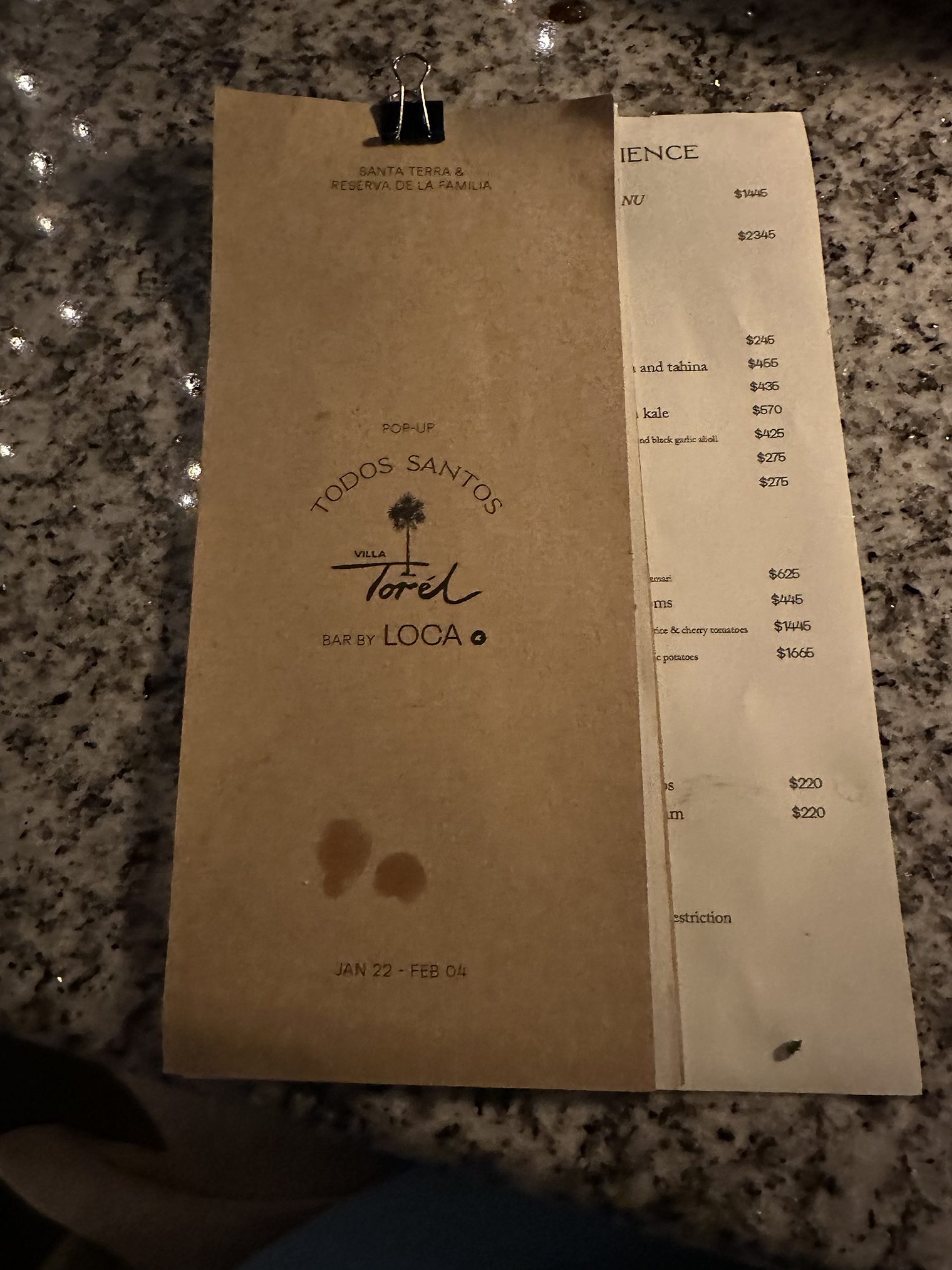 The Villa Torel and Loda Bar Pop-up will only be at Vino Park until February 4th. It is an extremely worthwhile experience with great food and service in an amazing setting overlooking Santa Terra’s vineyard and grounds.