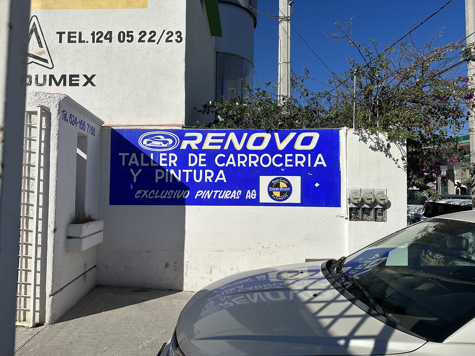 A truck backed into my Ford Bronco Sport in a tight parking lot and caused a small dent in the area above my bumper. Without anyone to give me recommendations on where to go, I did a Google search of body shops in San Jose del Cabo. I then drove around and looked at several of the top-rated shops to look at their operations. Several did not look like places that I would want to leave my car. I stopped at Renovo on Calle Ave La Paz just up from the fabric store and furniture store on the main highway to the airport. The Google search showed that they had been in business for more than seven years and have a rating of 5/5 with 11 reviews.