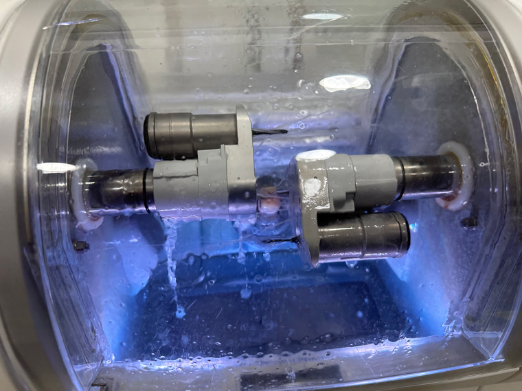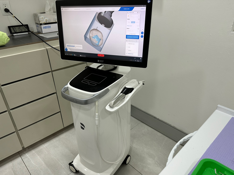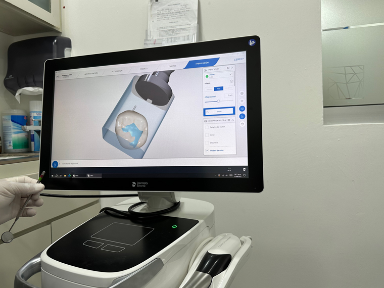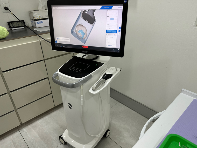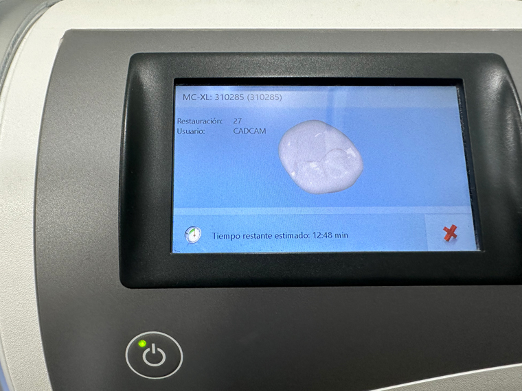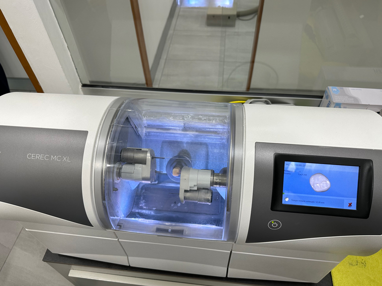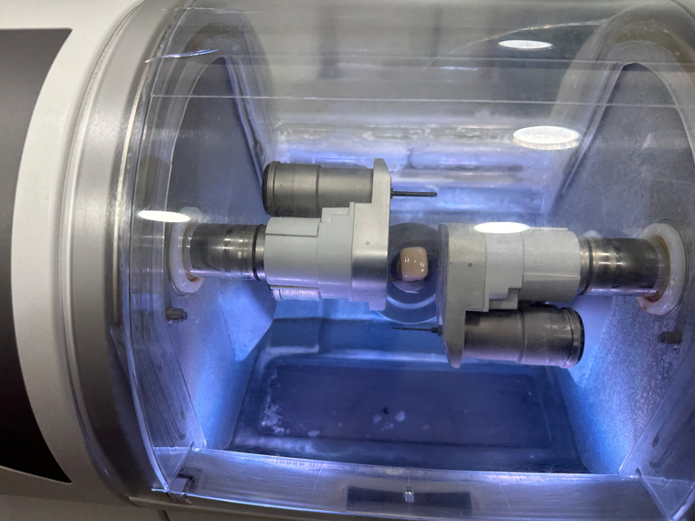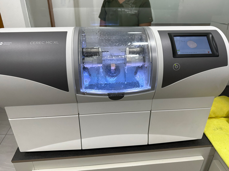 I made an appointment to come back and have Dr. Pedro replace the crown when he returned from a trip. When I was seated in the chair, Dr. Pedro took a look and the tooth and said the first step was to remove the remainder of the crown by grinding it down. No anesthetic was required because of the root canal. I never failed to be amazed by the technology advances that have occurred in dentistry. After removing the remnants of the crown, a blue laser wand was used to take a full impression of the tooth. This impression then was brought up on a screen behind the chair and Dr. Pedro manipulated the screen to finish the design of the crown. This information was then sent to the 3-D printer in another room for the crown to be cut. Dr. Pedro said that this would take about 15 minutes. He selected the block to match the color of my teeth and it was placed in the 3-D printer. I went to watch the crown actually being cut and shaped in real time.