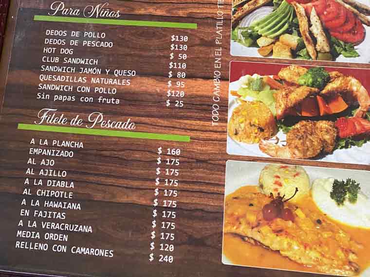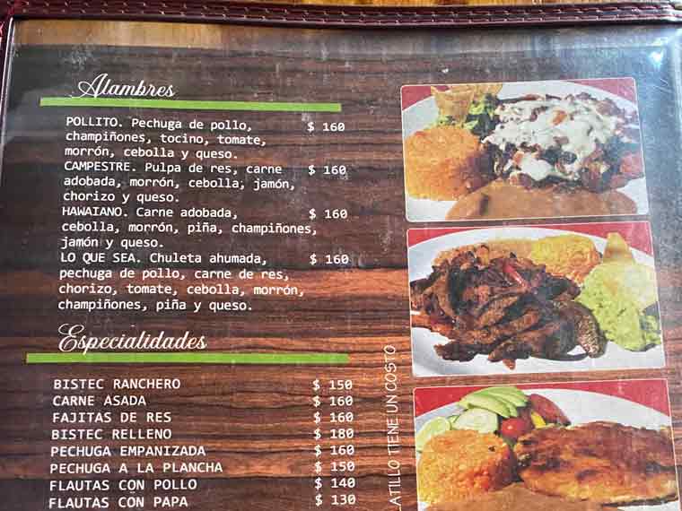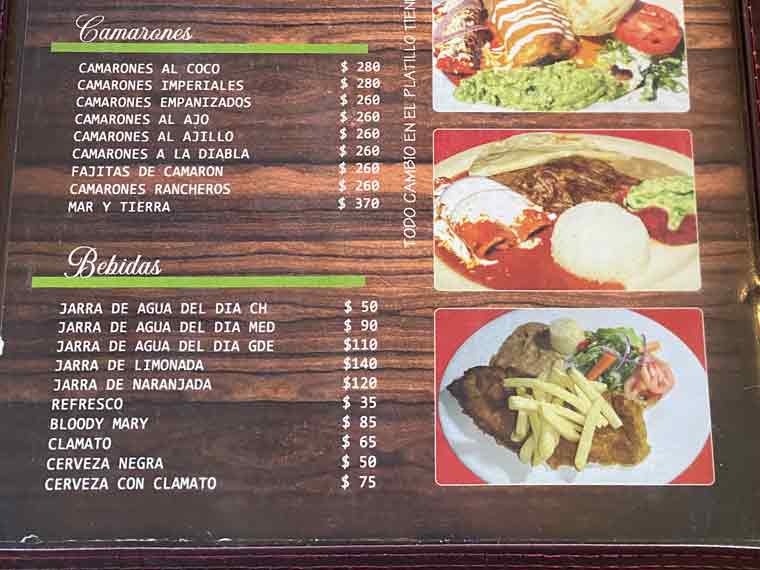 Bill Girdwood had recommended this restaurant to us a few times and we had tried to go several times before we finally succeeded. We had tried on Saturday (when they are closed) and a few times when the line up outside made it unrealistic to stop. Clearly a very popular local place The regular menu offers appetizers (e.g., nachos, guacamole, soup, shrimp cocktail), salads, a children’s menu and main courses of fish, chicken, shrimp and steak. There are a large range of Mexican regulars from tacos and quesadillas to enchiladas, sopes, chile relleno and fajitas.
