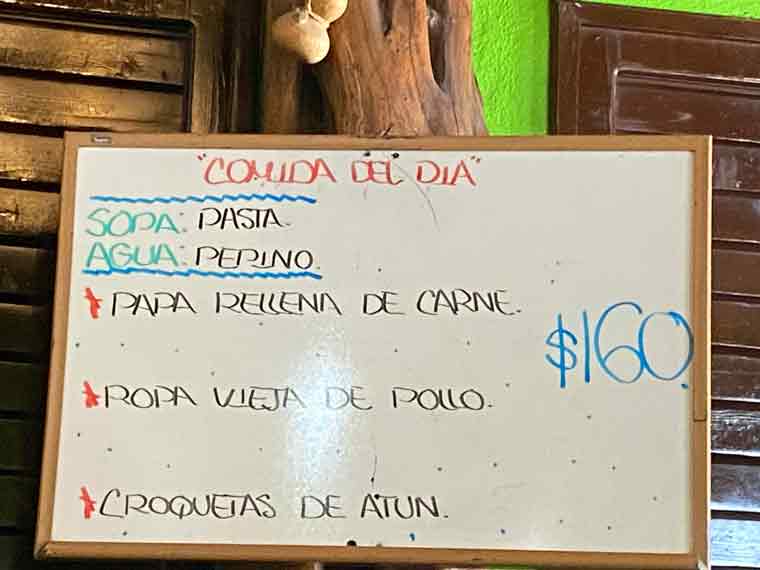 Located in north Cabo San Lucas just before the highway to Todos Santos starts on Salvatierra s/n between Lopez Mateos and Camino al Faro is the traditional Mexican Restaurant Bar Campestre. This local favorite has been in business since 2001 owned and operated by a family that provides authentic Mexican food with good service at very reasonable prices. With indoor dining under a walled palapa, diners can choice from one of the three item daily specials – soup, a drink and a choice of main course for $160 pesos (or about $8.00).